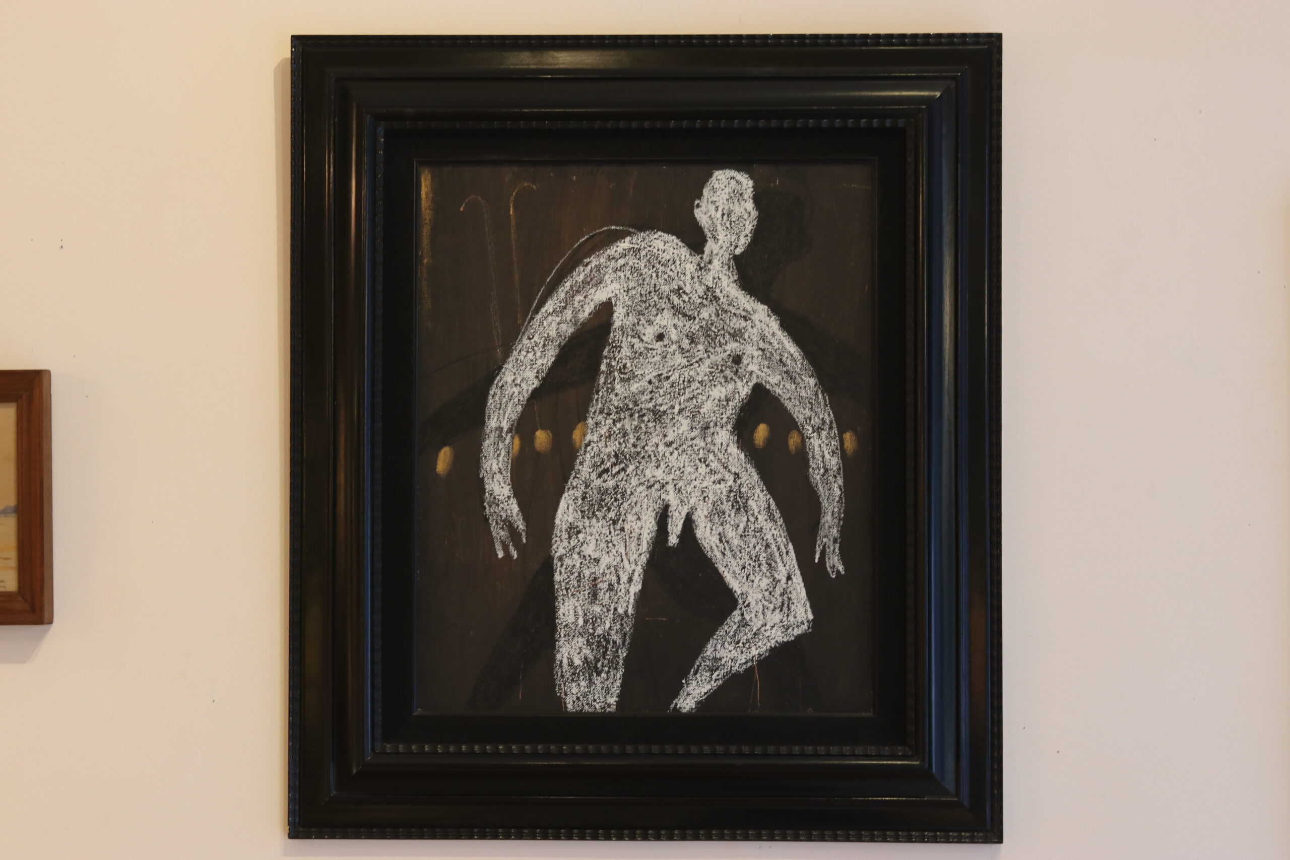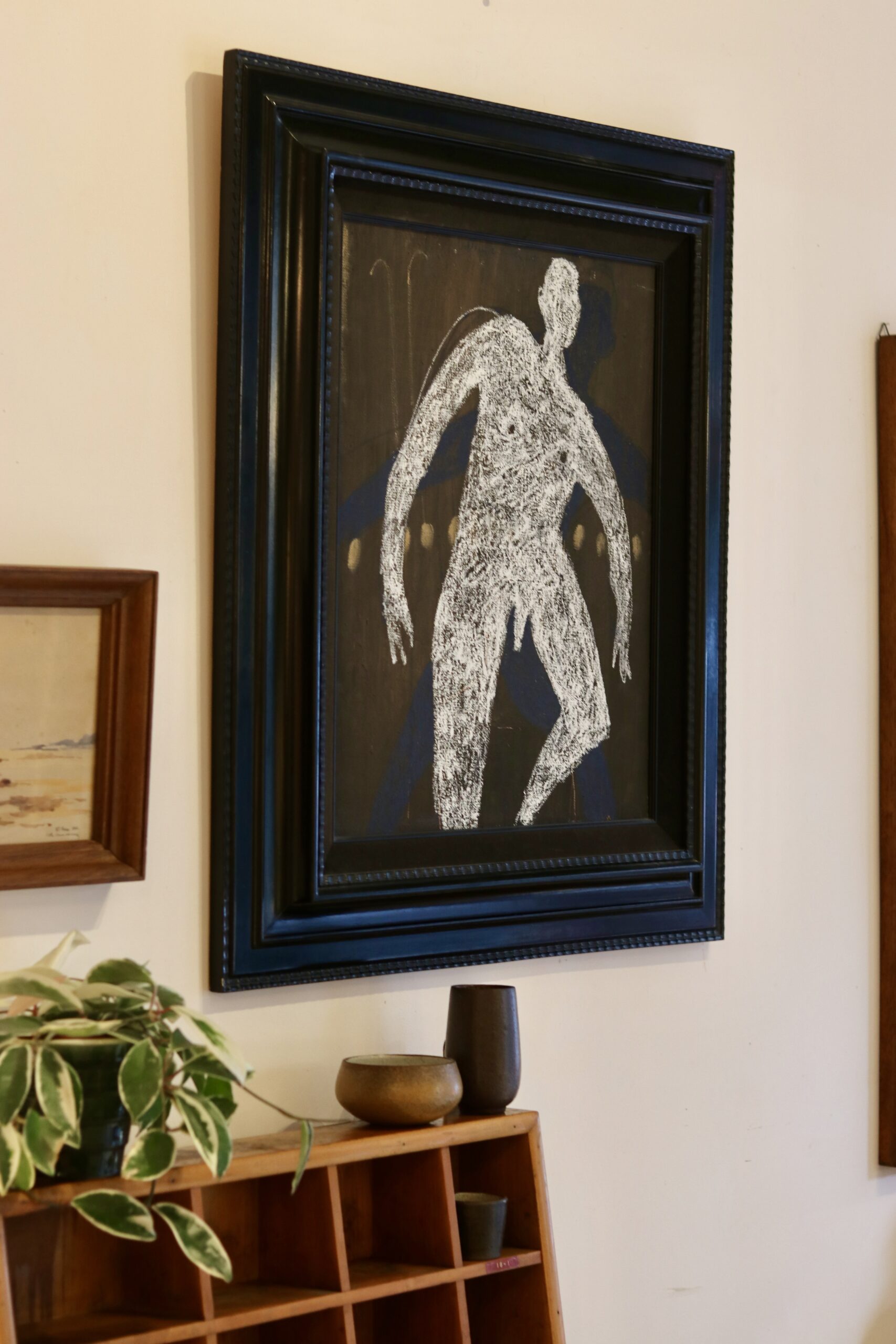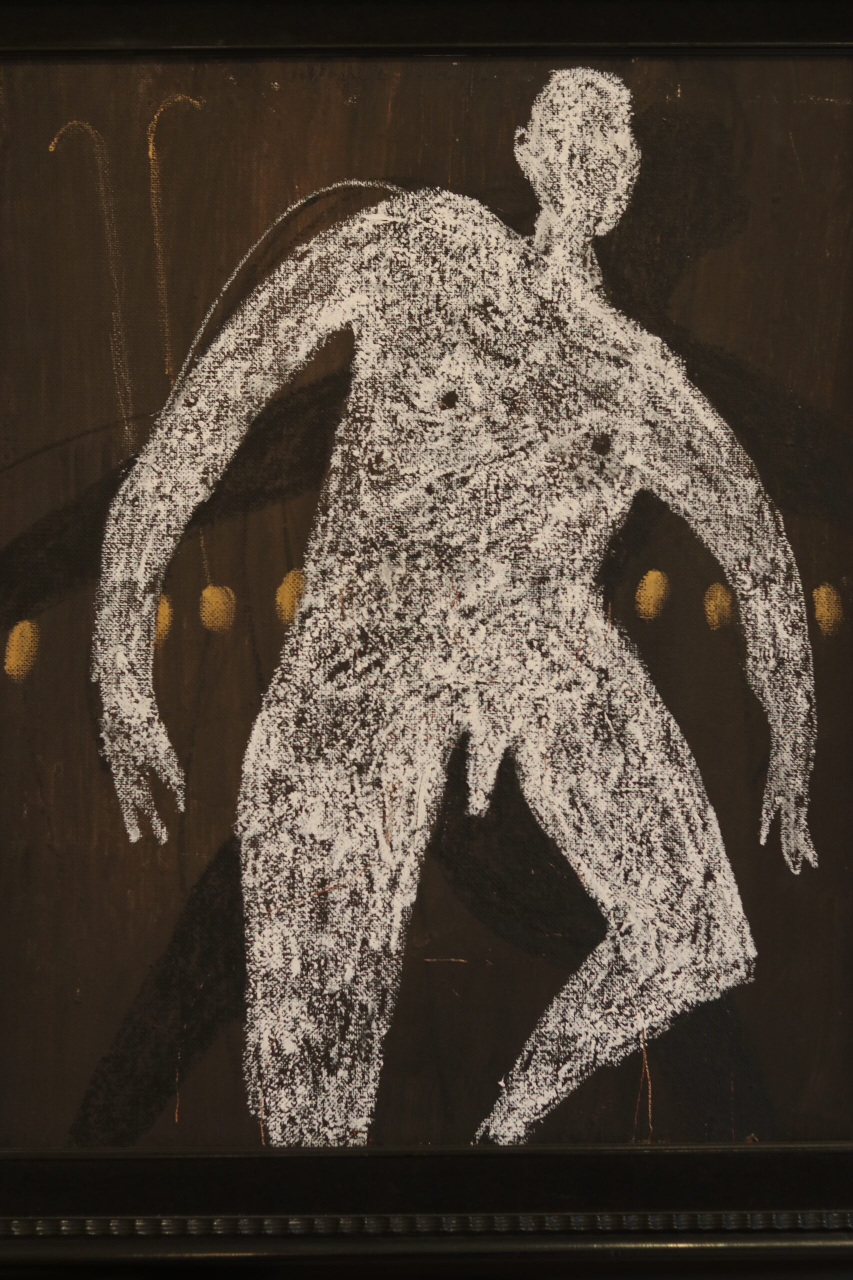 Bertrand Gobbaerts (1960, Mons) « ne pas glisser », 2001, technique mixte sûr toile dans un cadre ancien Napoleon III. Dimensions: H: 86,5 x 76,5cm
