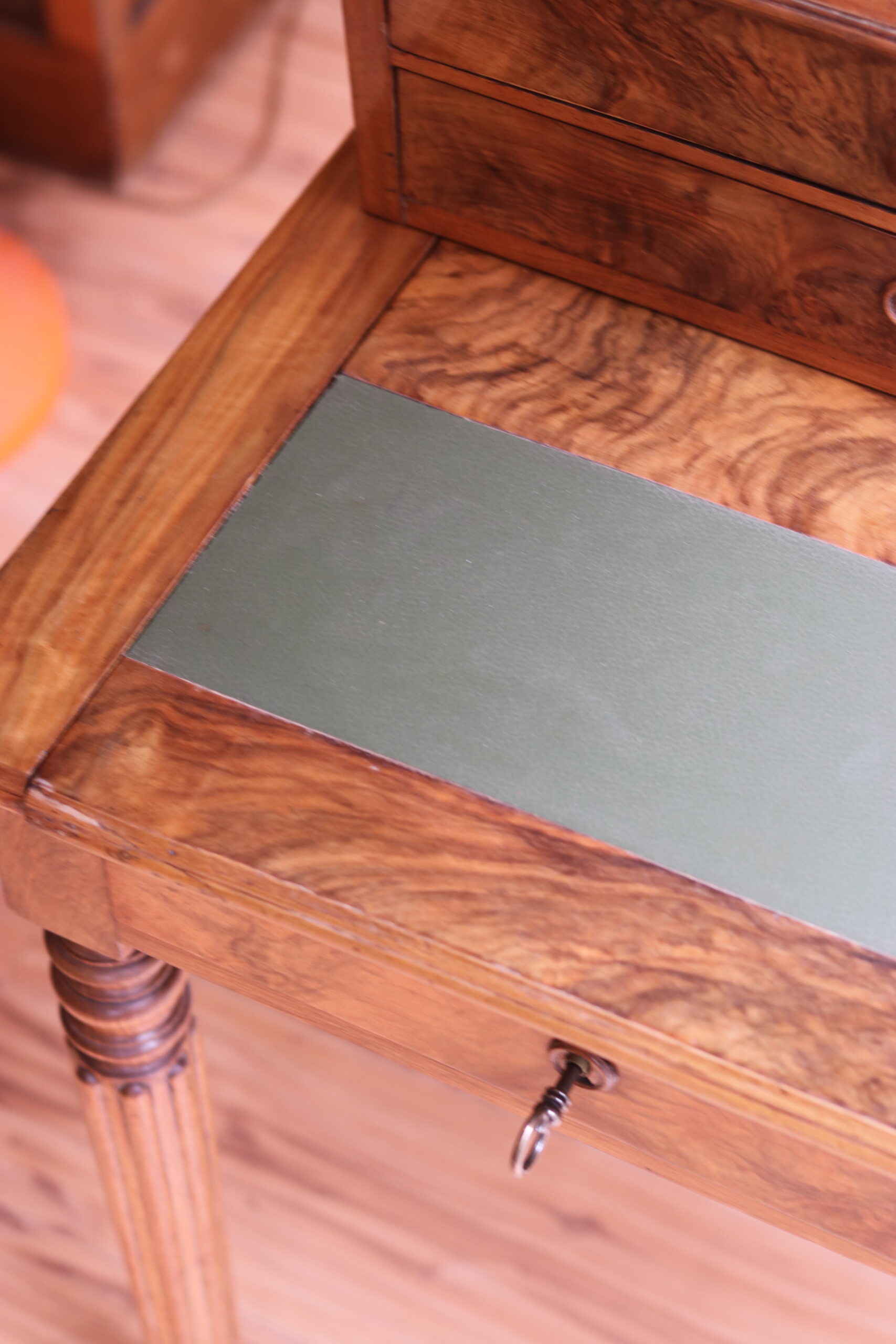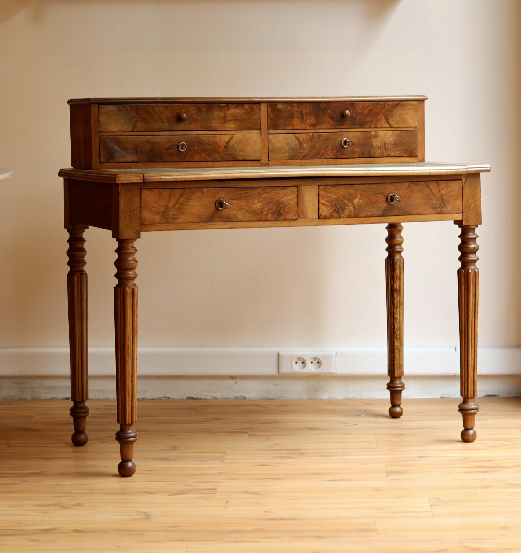 Charmant bureau à gradin en noyer d’époque XIXe, de style Louis-Philippe, datant des années 1860. Entièrement restauré, il séduit par la richesse de son veinage et la chaleur de sa teinte, typiques des belles essences de noyer ancien.