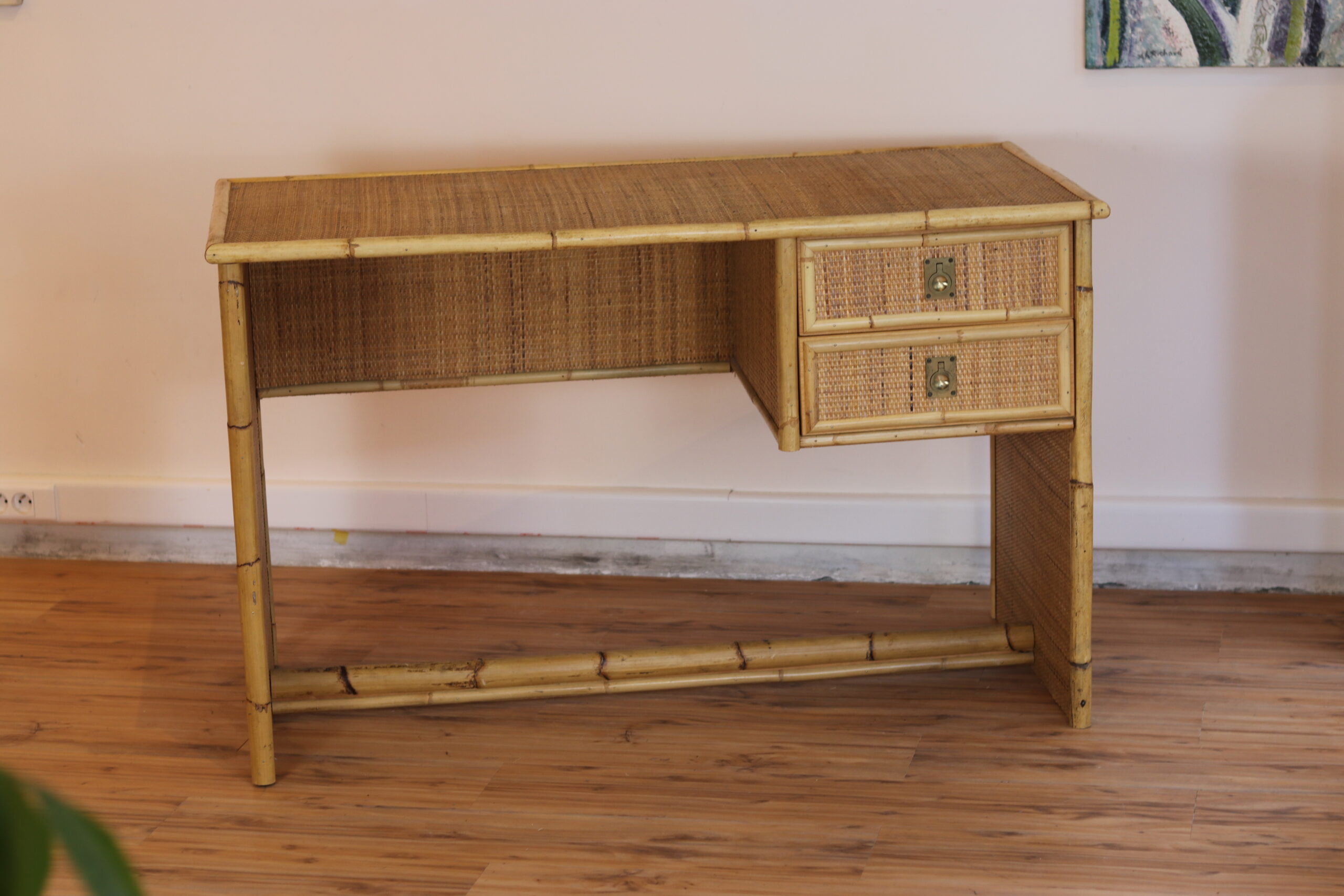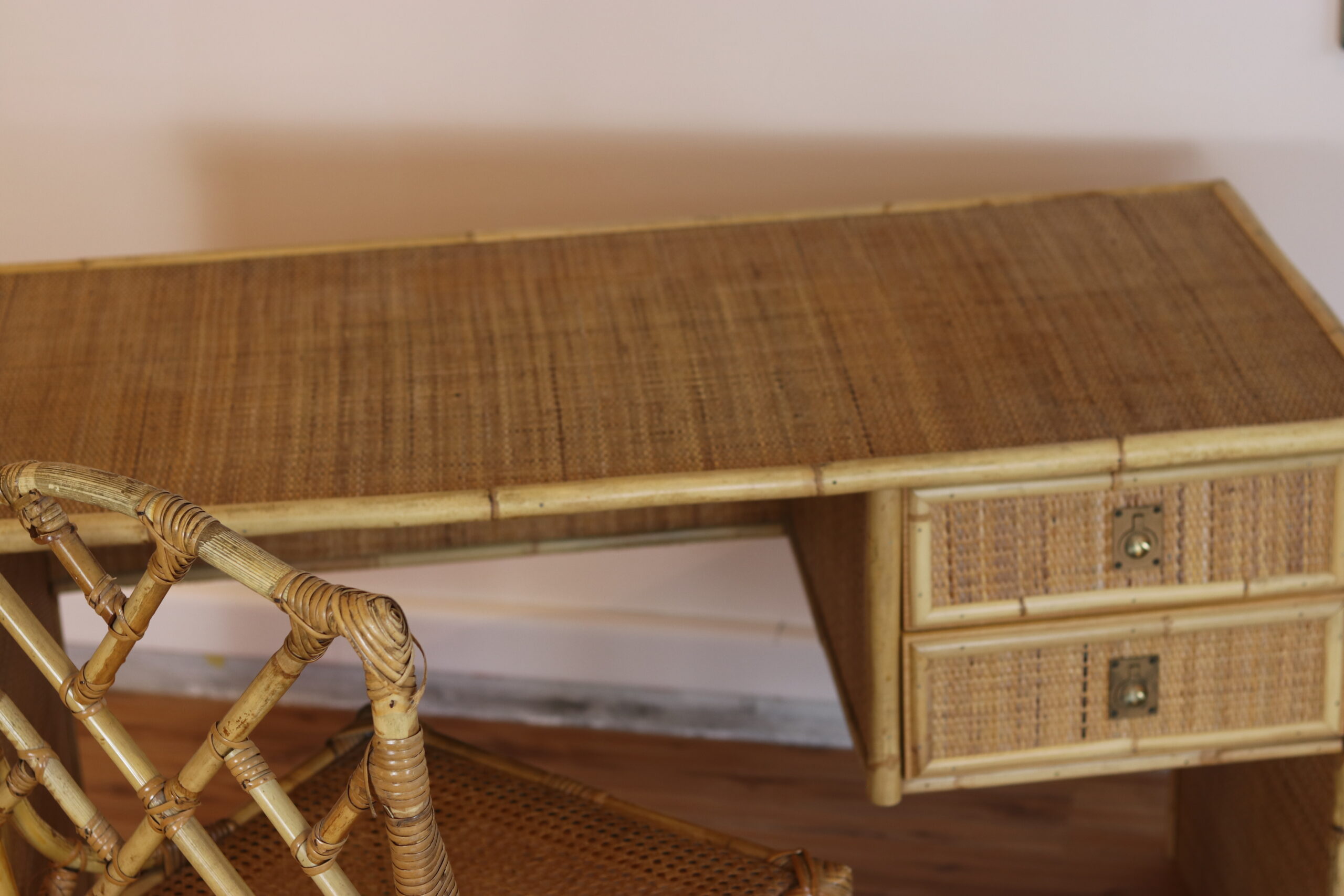 Bureau vintage signée Dal Vera (Italie, années 70) en bambou & rotin