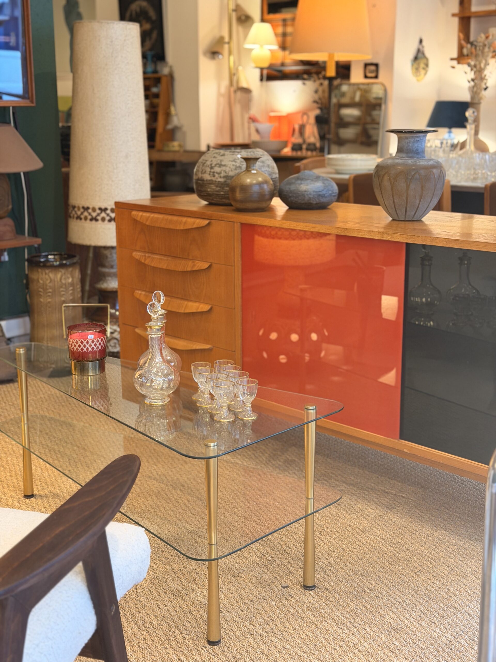 Enfilade mid-century années 60 en bois et verre coloré