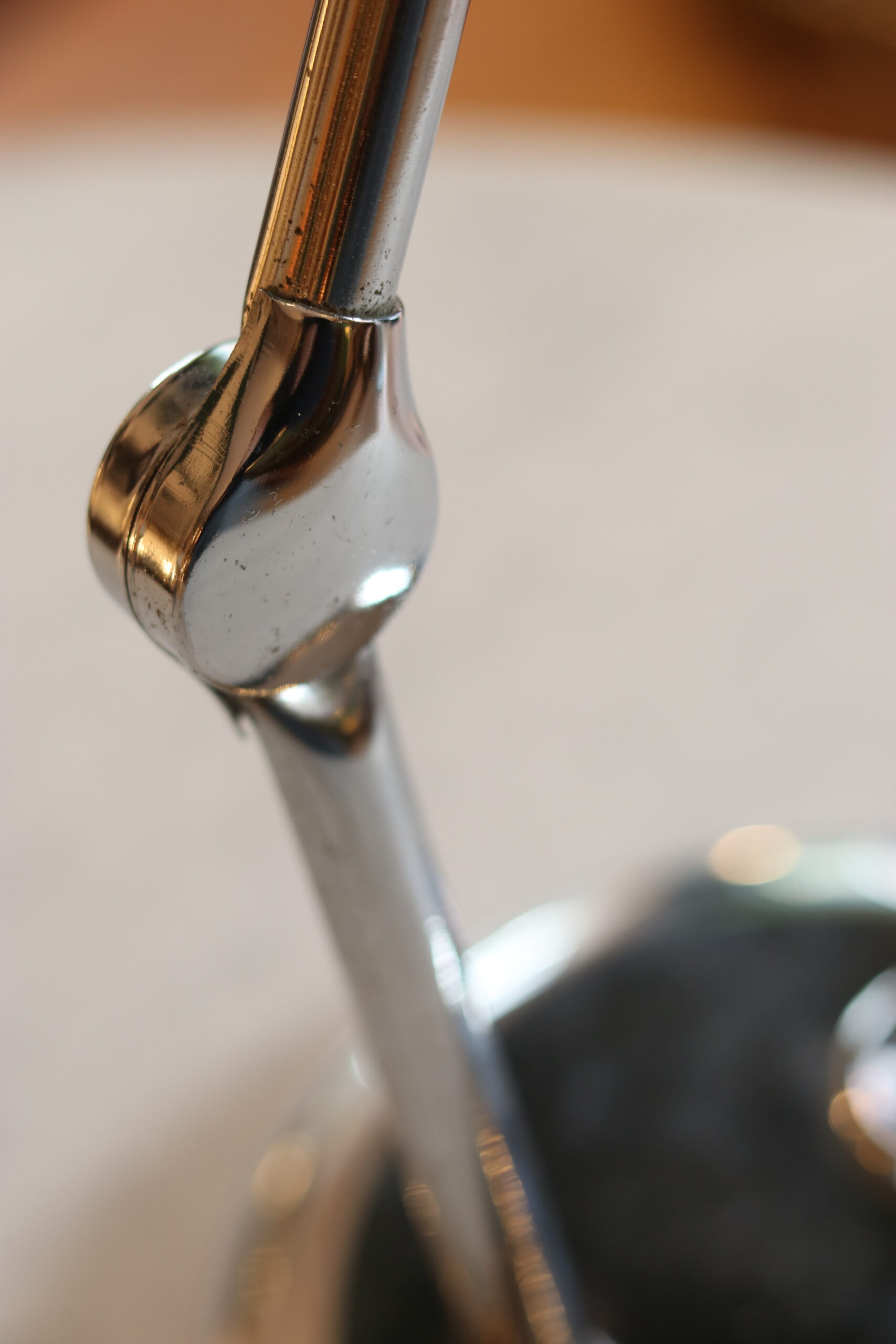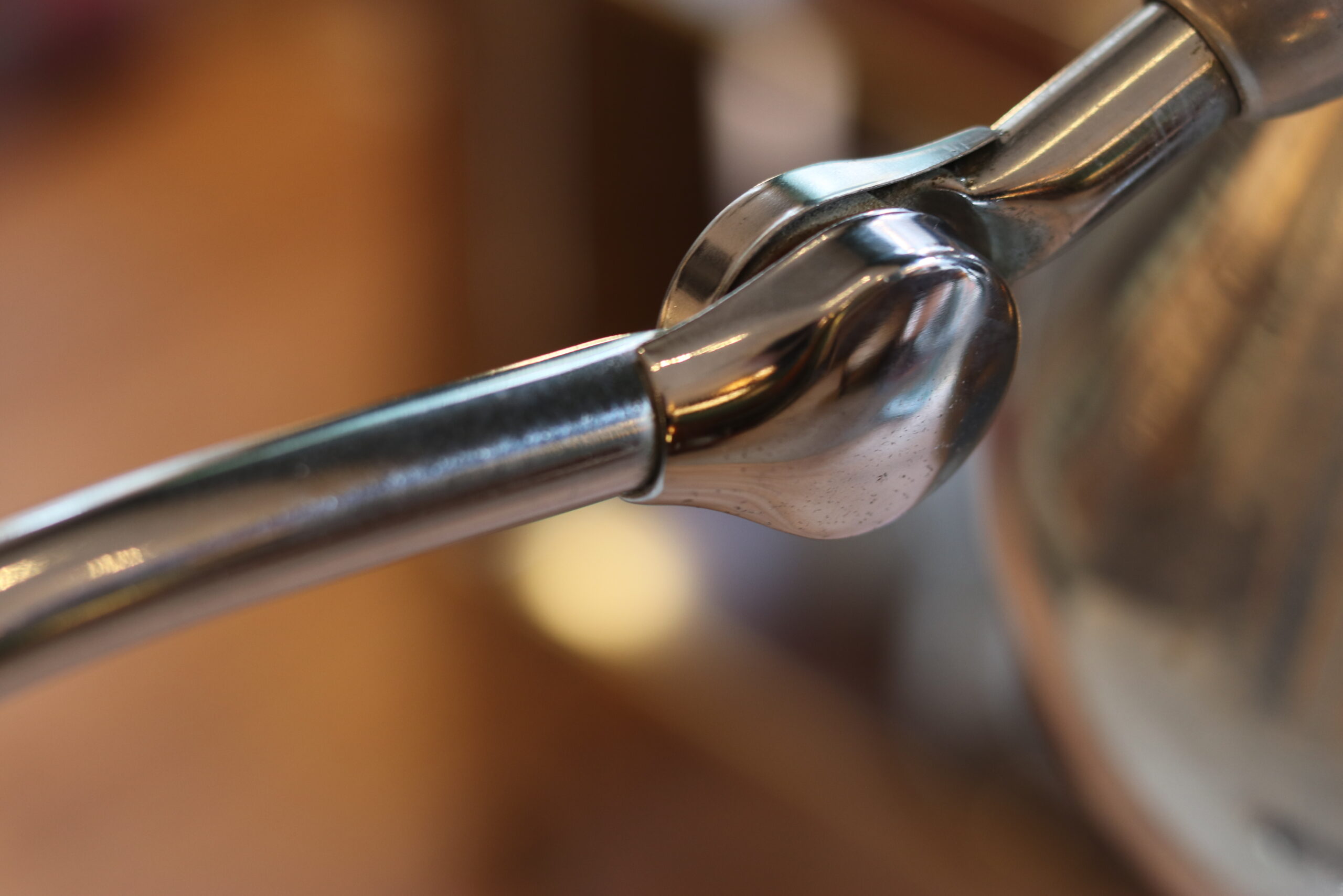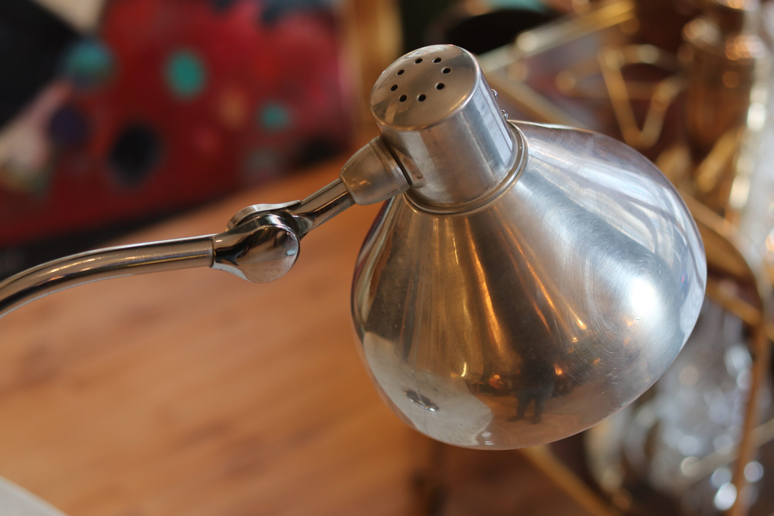 Structure en métal chromé, bras articulé et réflecteur orientable. Très bel état, électricité fonctionnelle.
