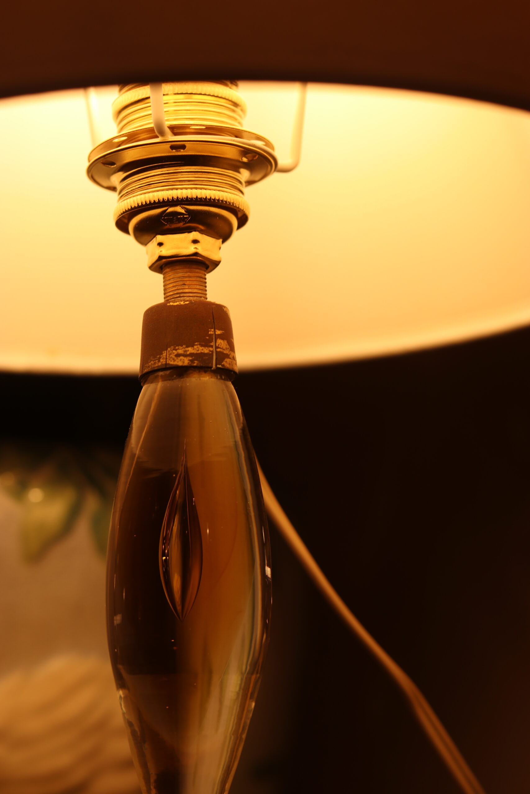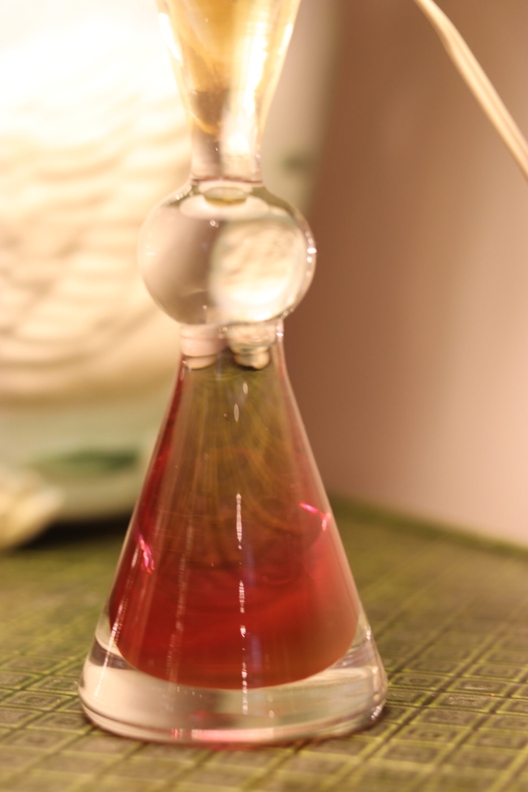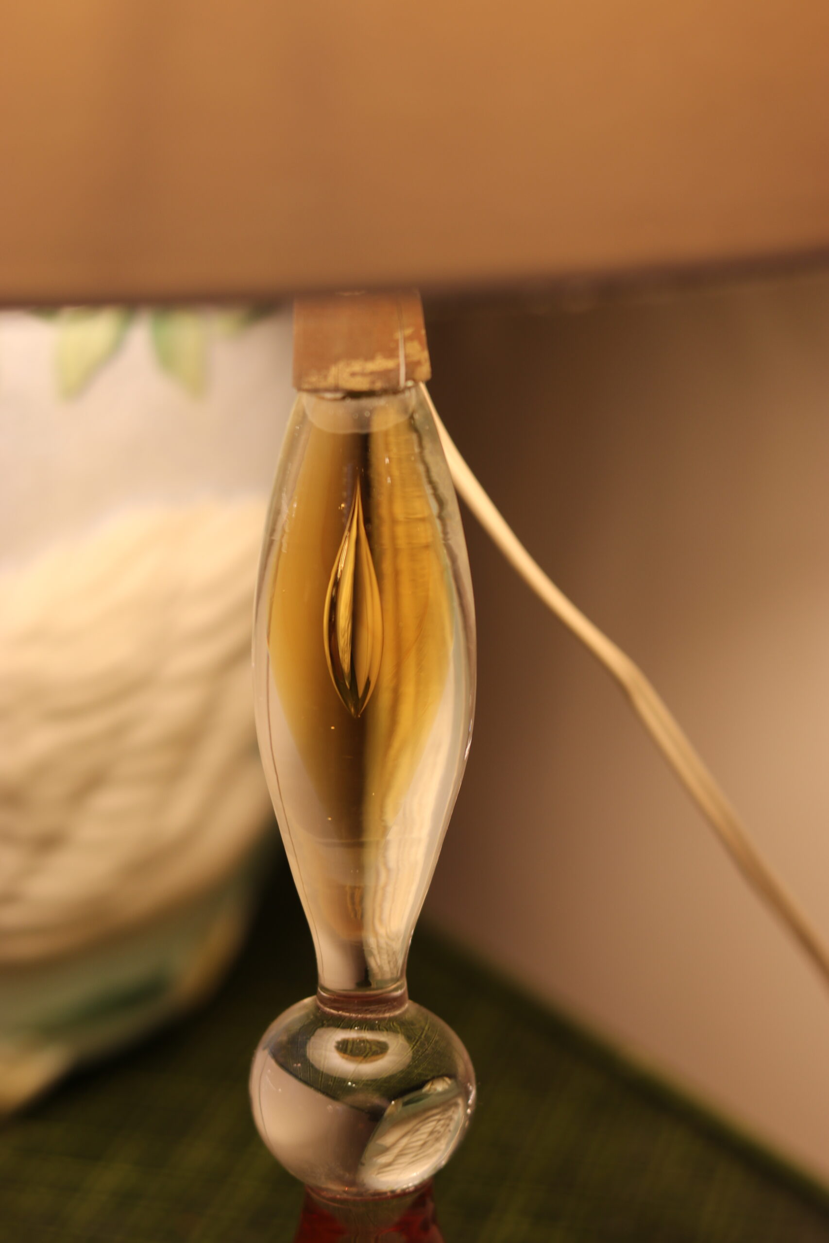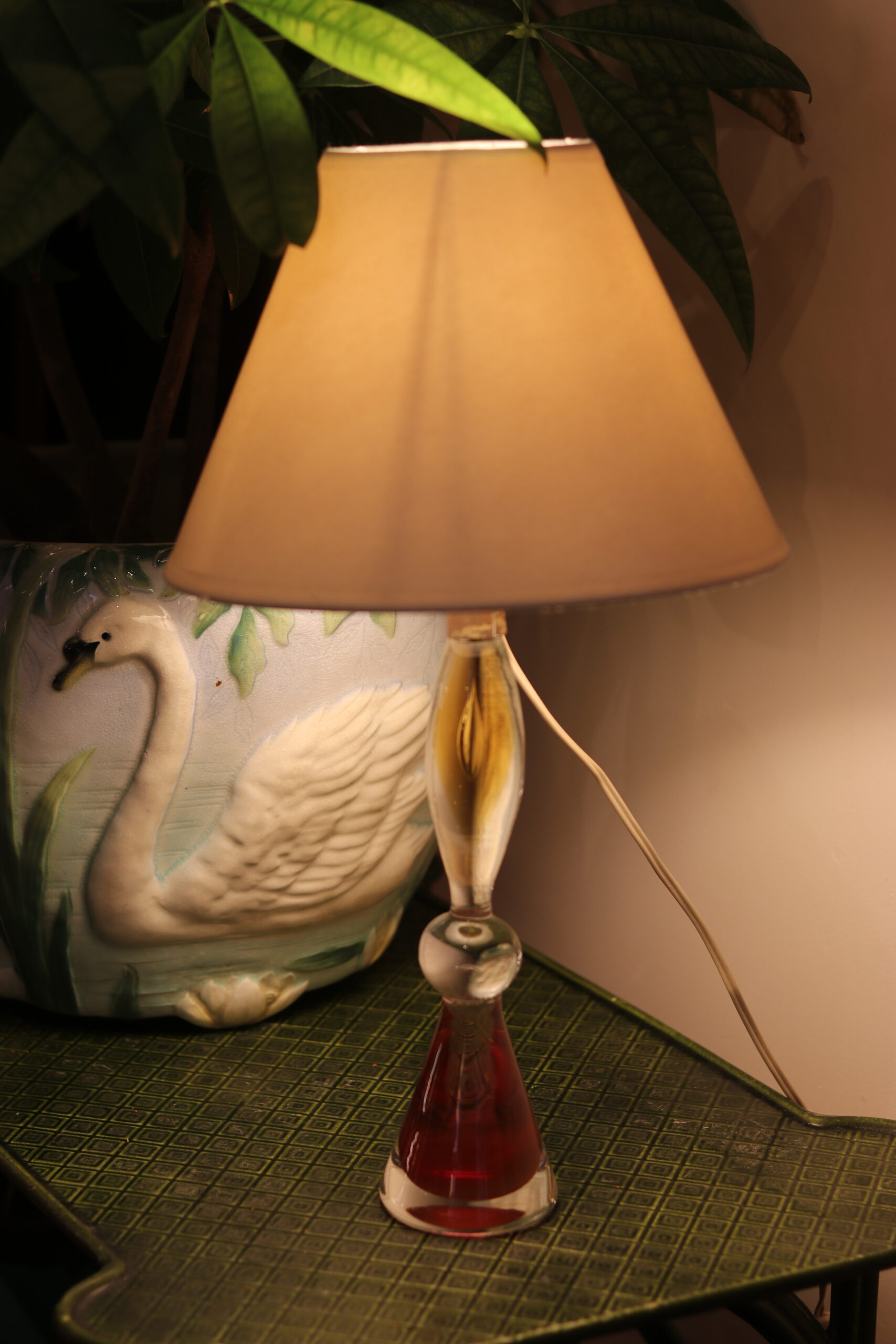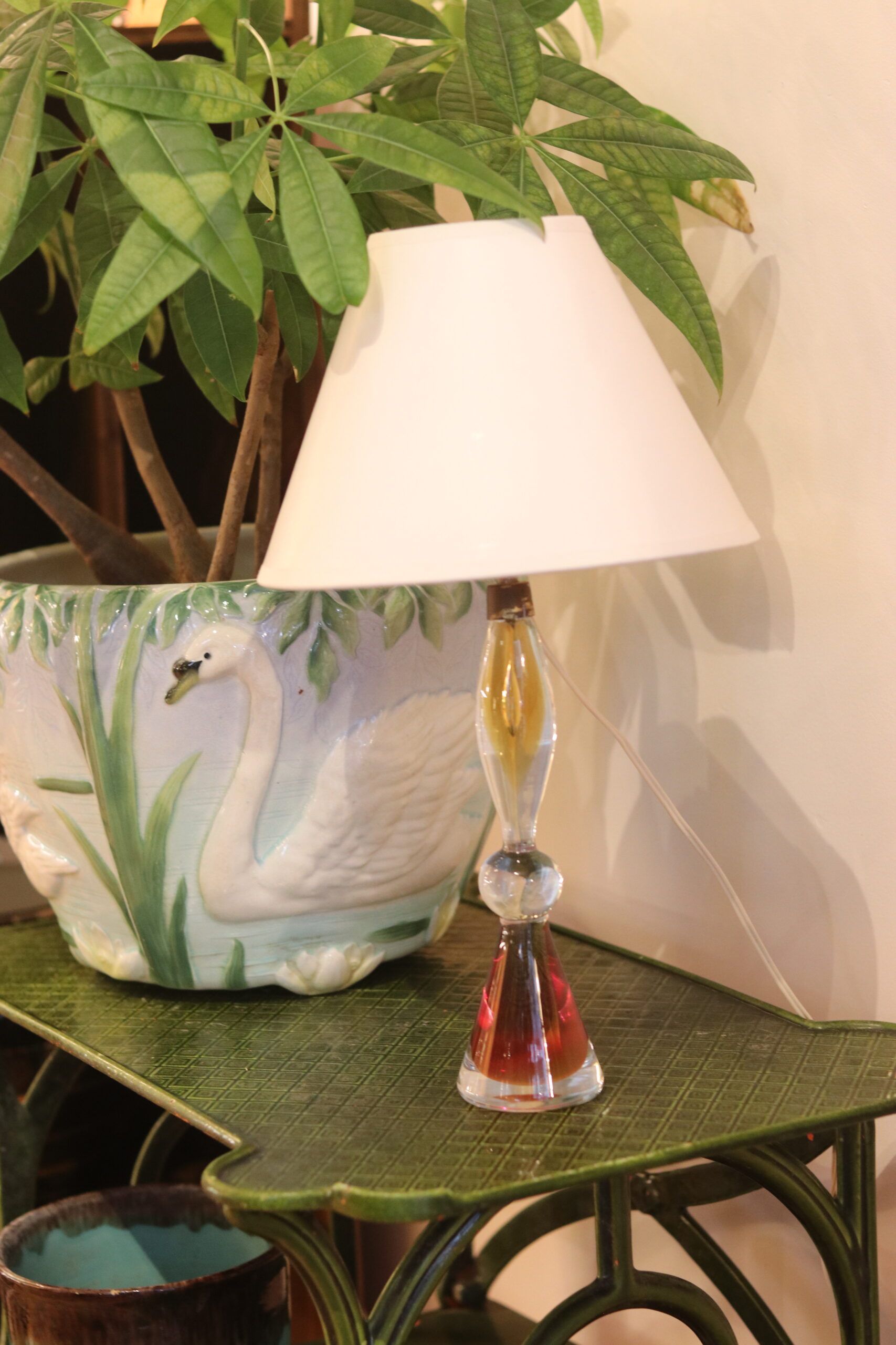 Lampe de table en verre tricolore (transparent, rouge et jaune), années 1950, Murano.