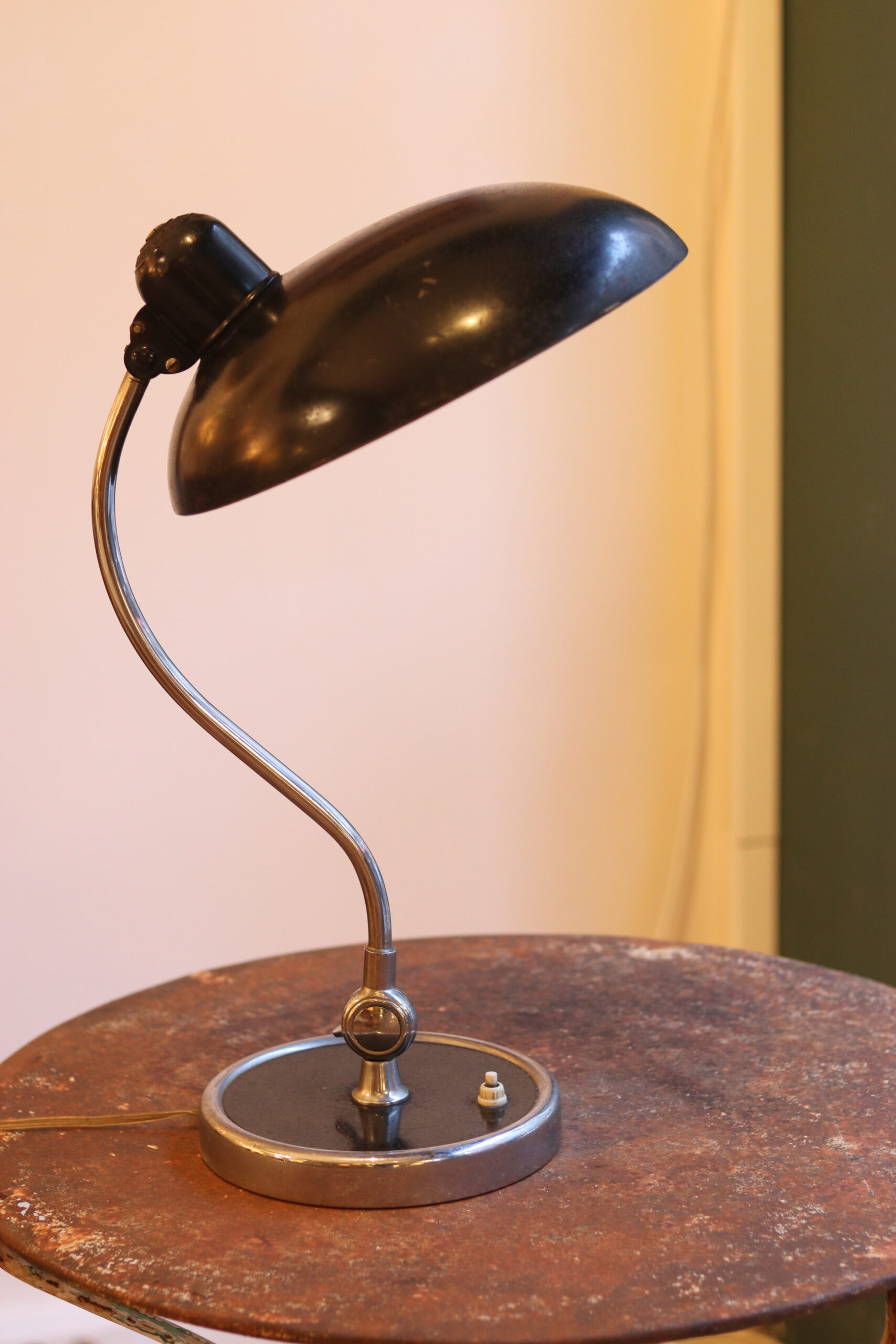 Cette pièce est entièrement d’origine, y compris l’interrupteur, et fonctionne parfaitement. Elle présente des traces d’usage cohérentes avec son âge, sans nuire à son esthétique.