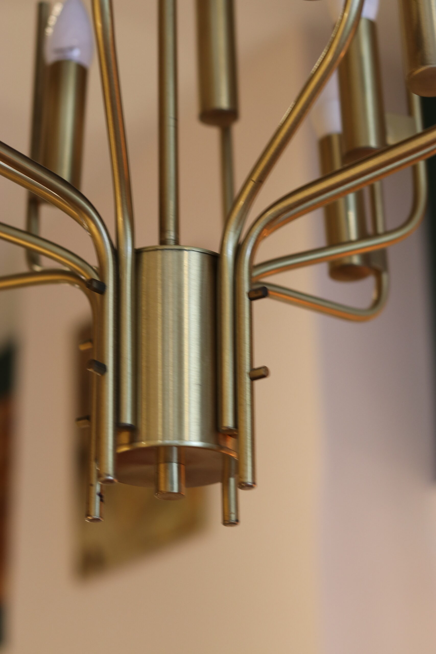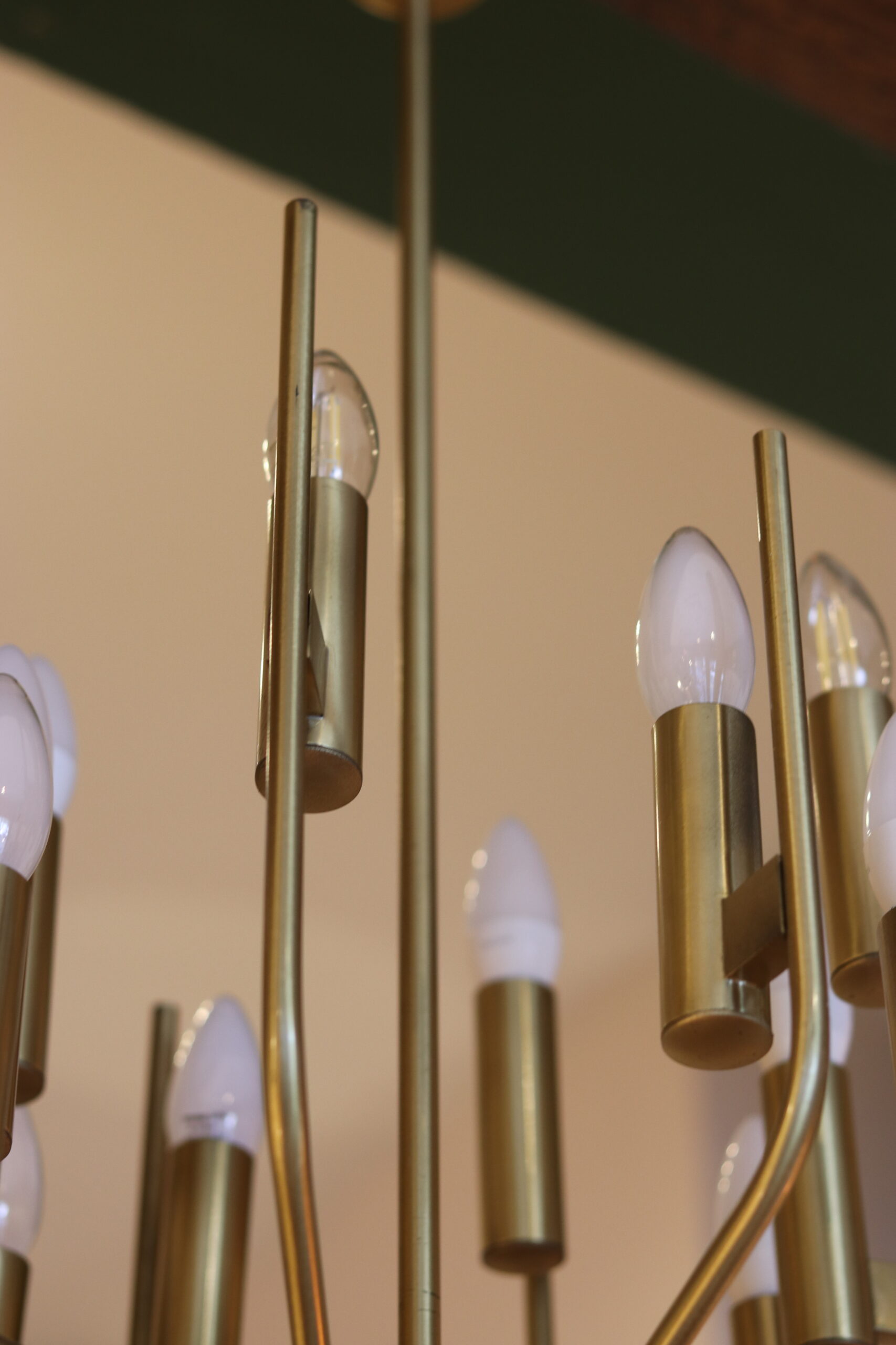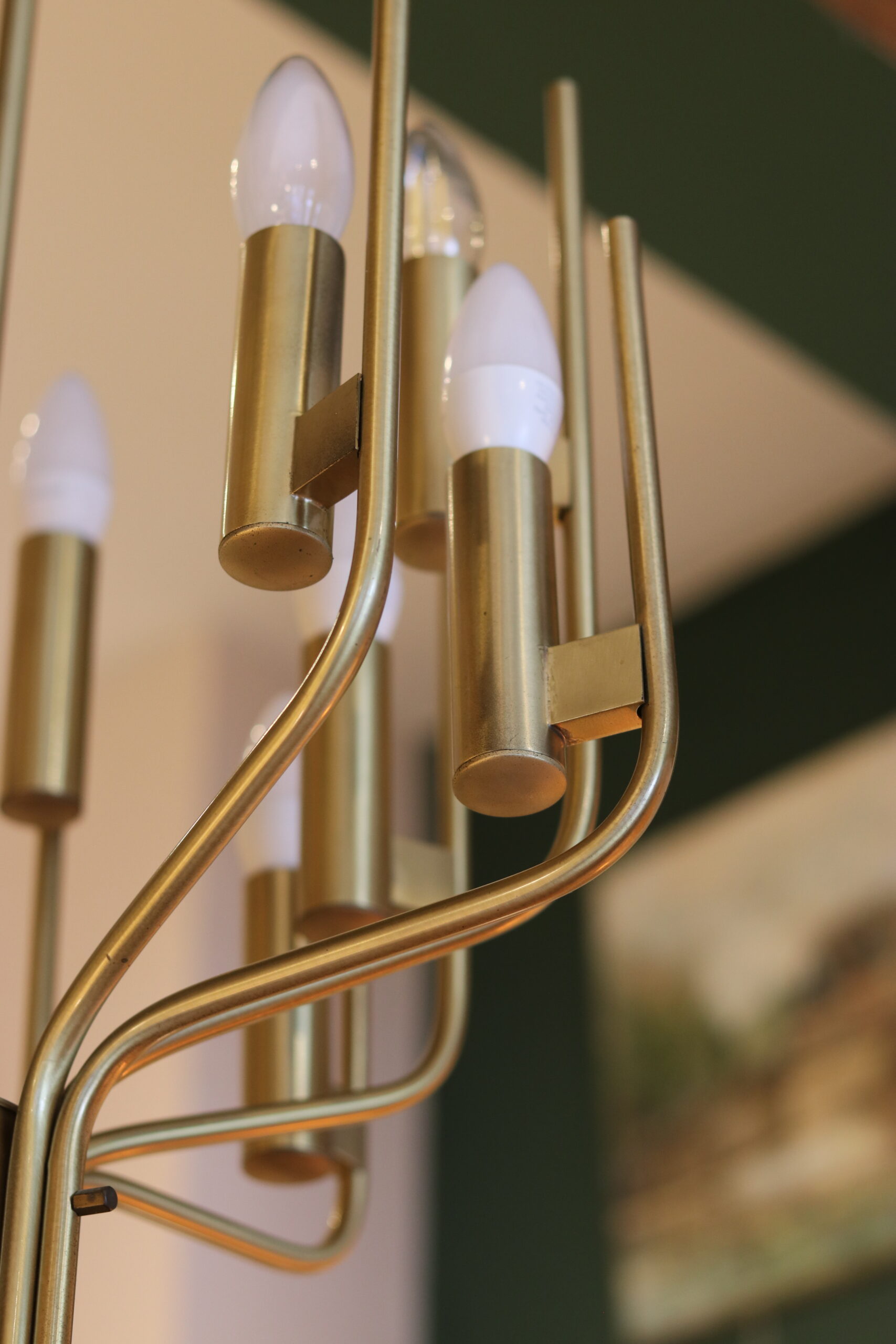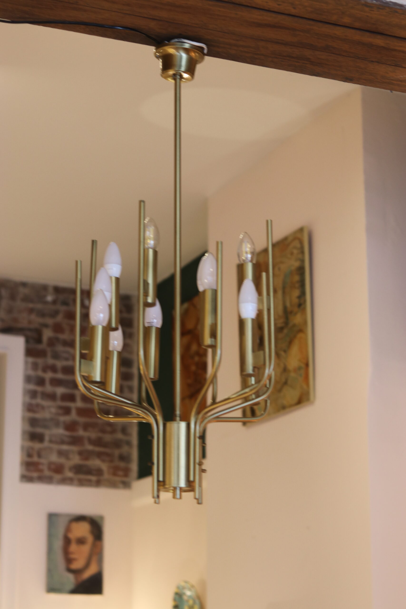 Ses lignes élancées et son rythme visuel en font une pièce à la fois sculpturale et décorative, idéale pour apporter du caractère à un intérieur, qu’il soit contemporain ou plus classique. La lumière y est chaleureuse et diffuse, sublimée par la teinte dorée du laiton.