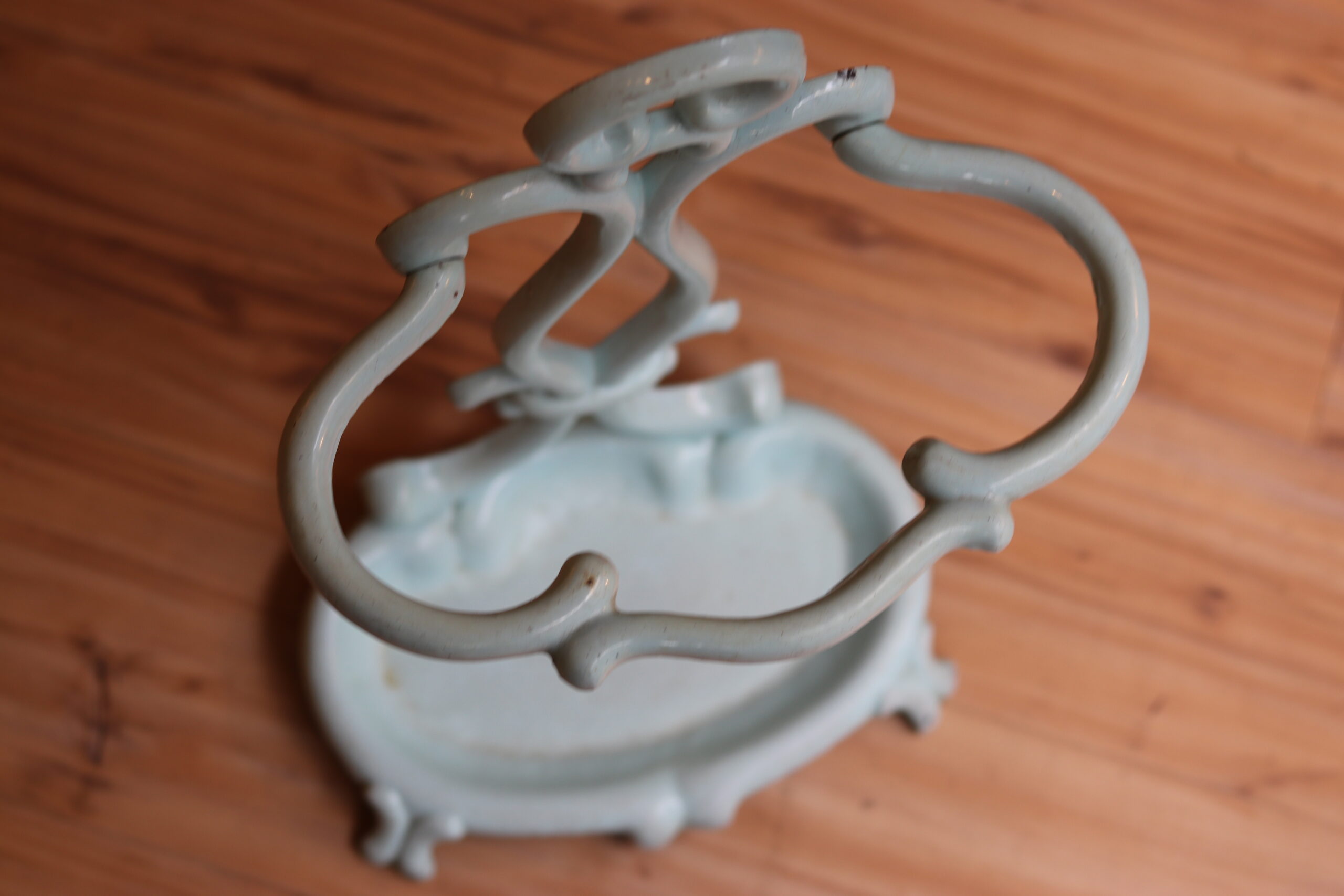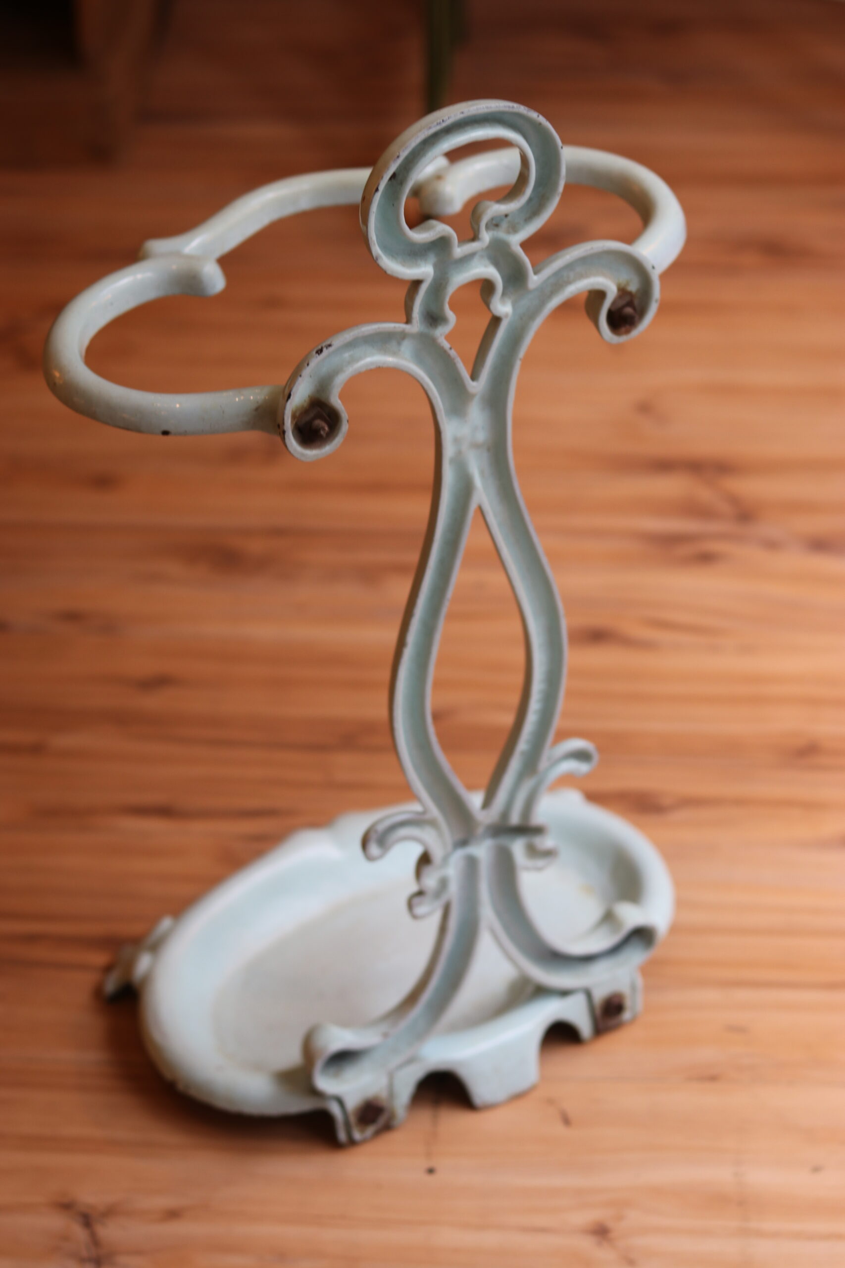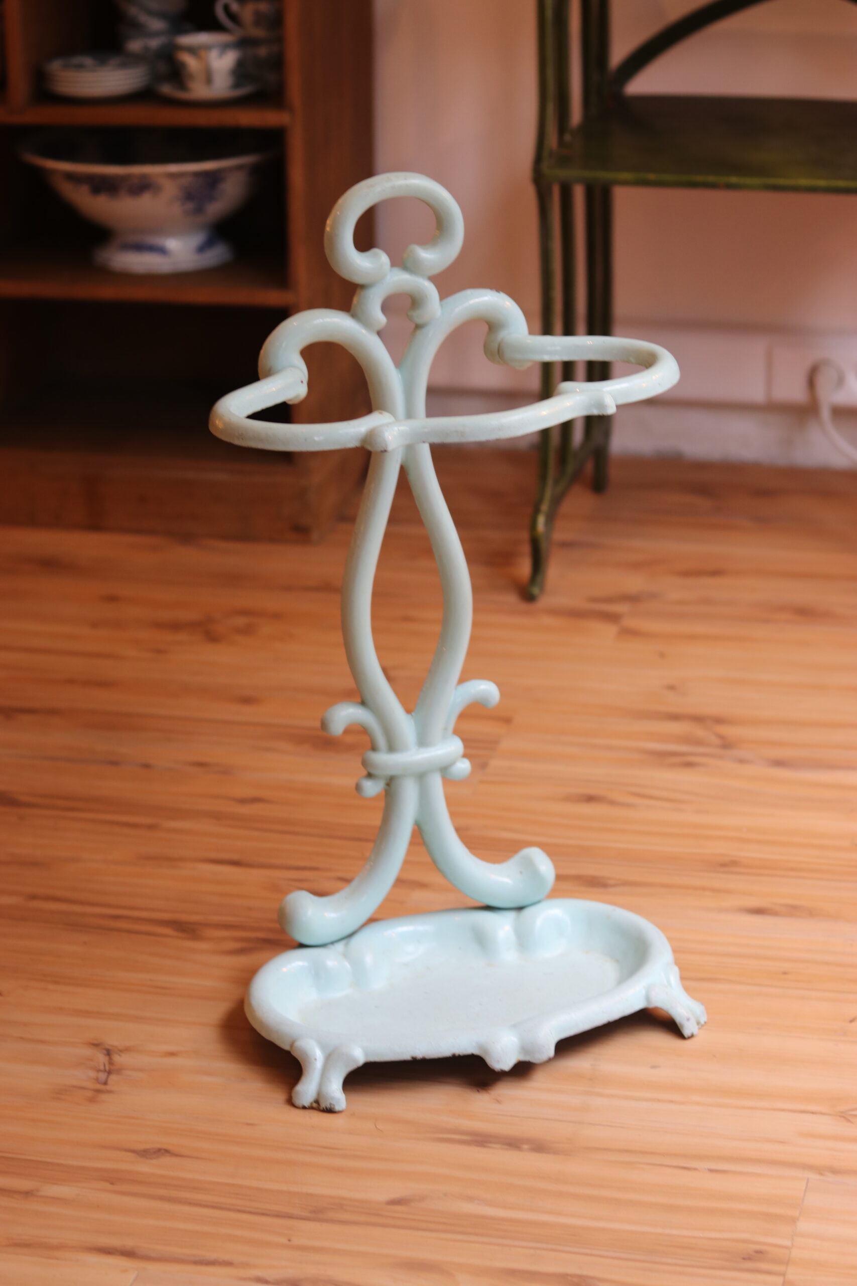 Porte-parapluie Art Nouveau en fonte émaillée couleur bleu ciel, début XXe