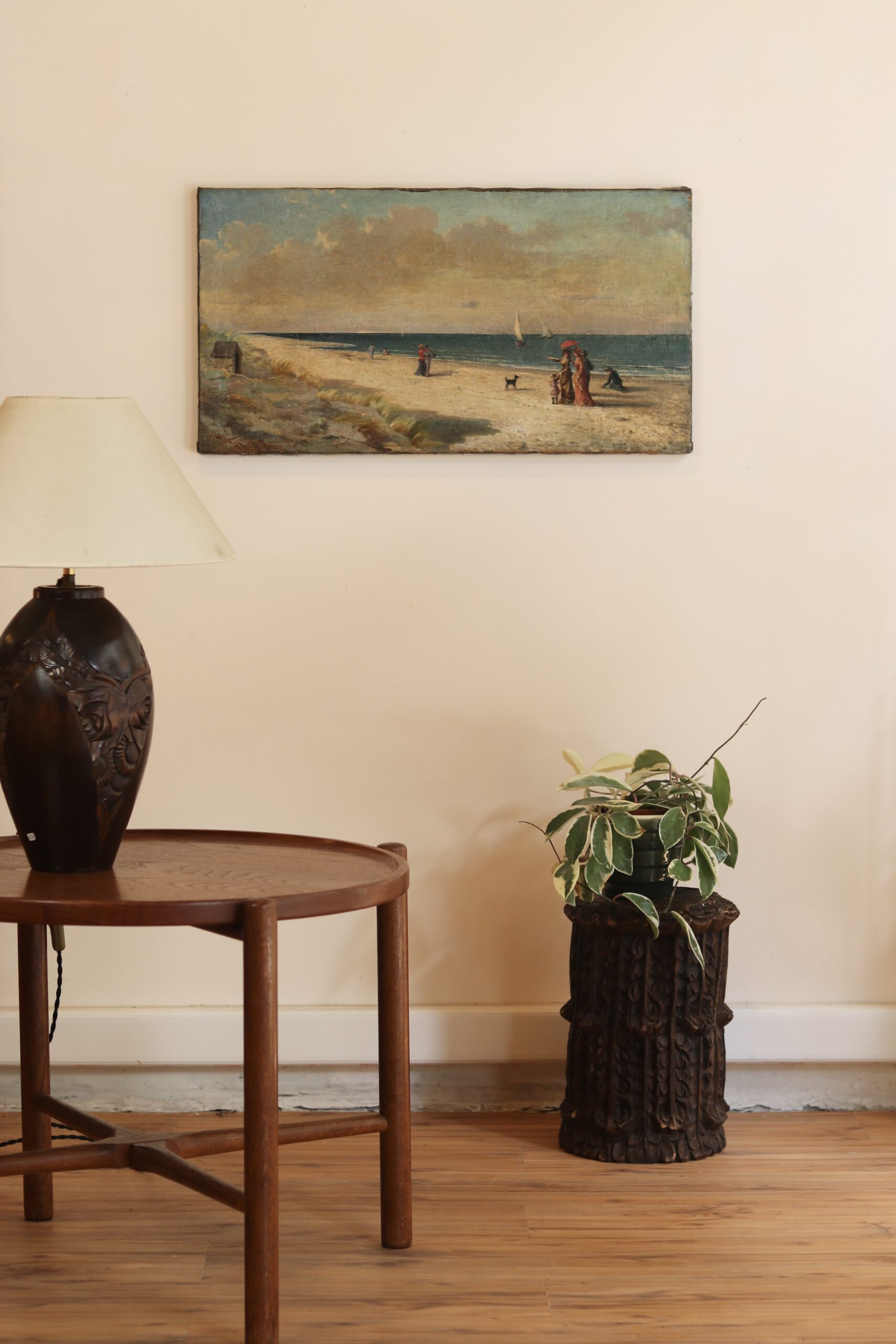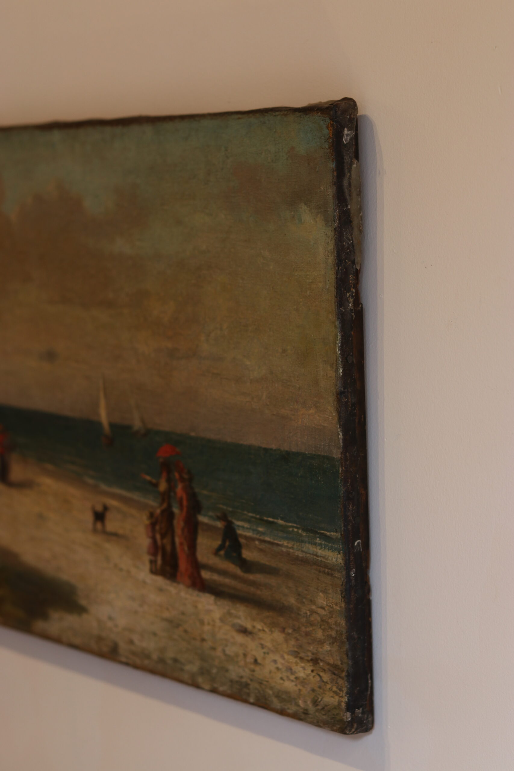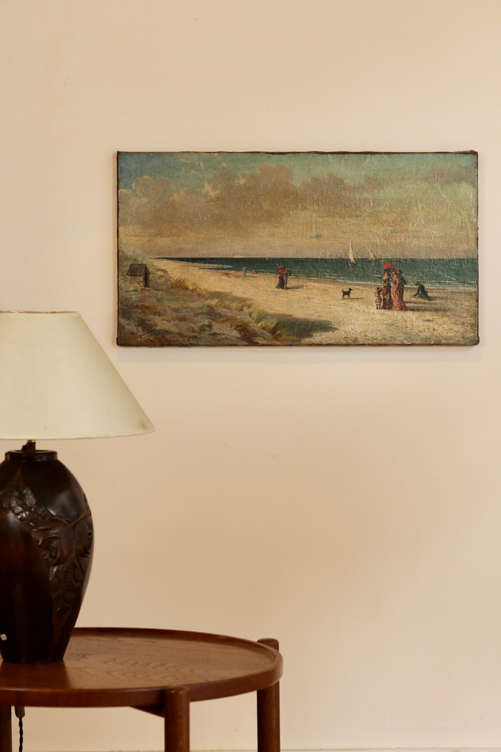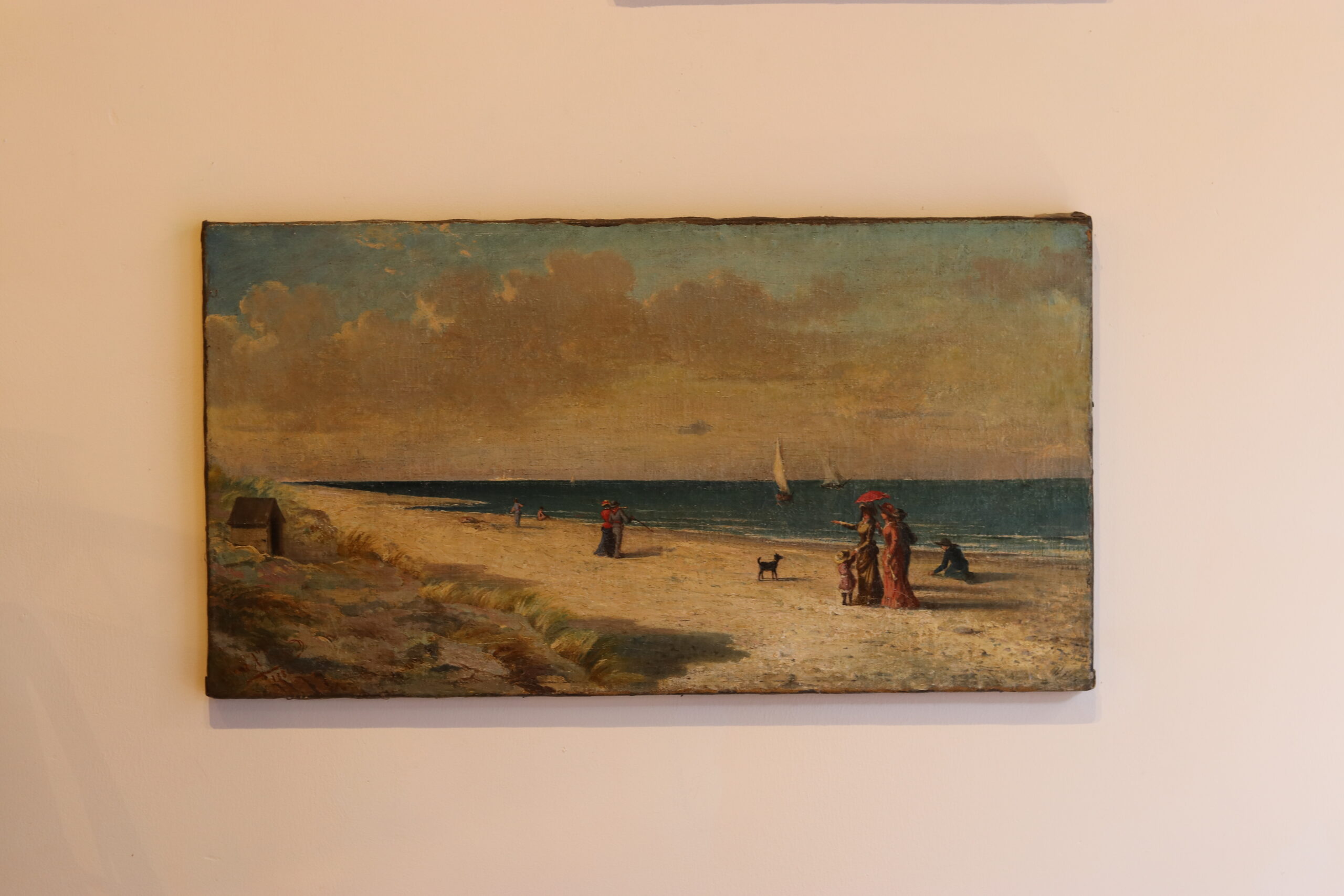 Une inscription ancienne au dos indique « Plage près de Montpellier, dans l’Hérault », situant probablement la scène sur le littoral méditerranéen.