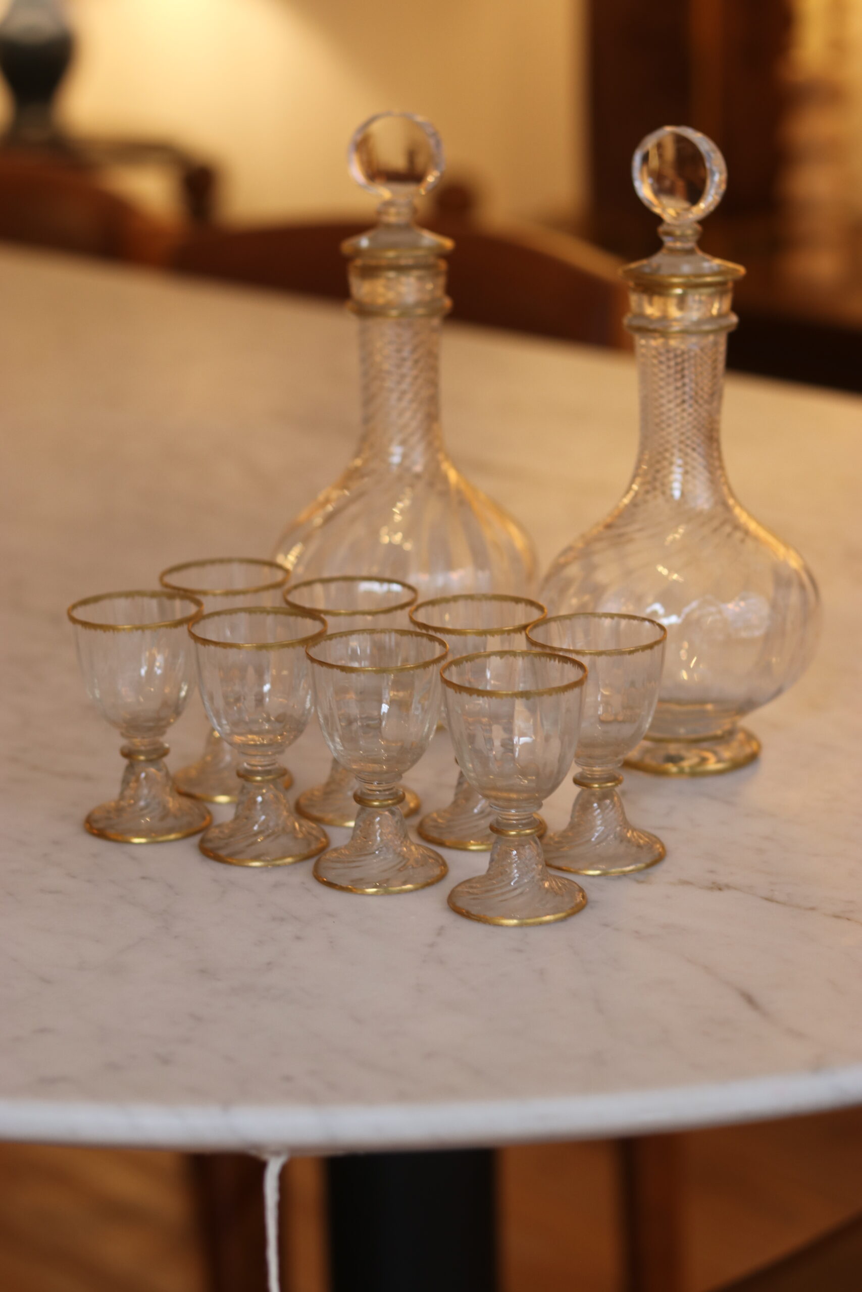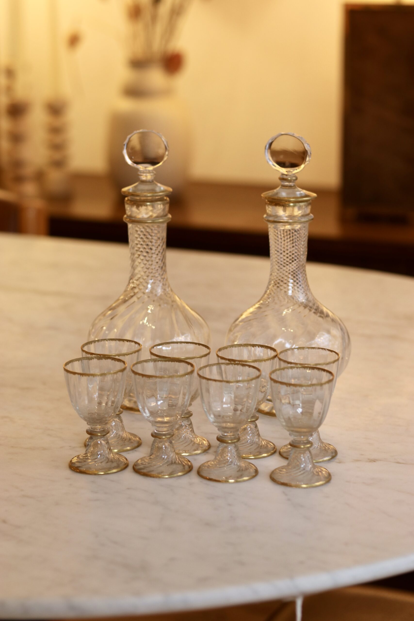 Élégant service à liqueur en cristal attribué à Daum, commande spéciale pour L’Escalier du Cristal.