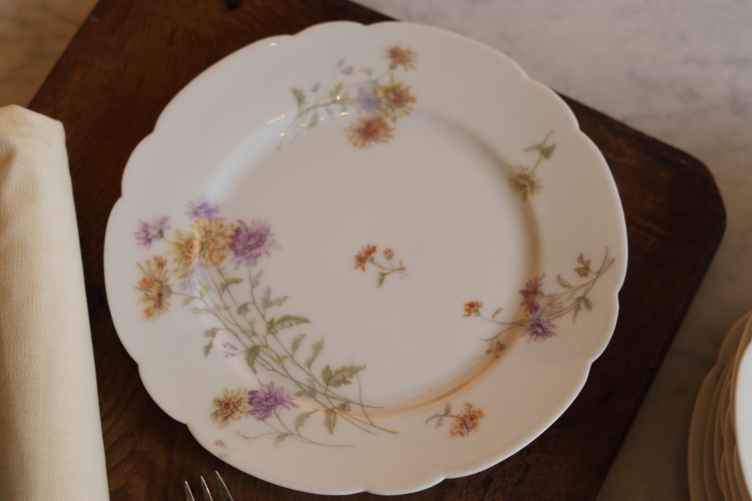 Décor floral délicat, forme chantournée. Ø : 22 cm. Parfait état.