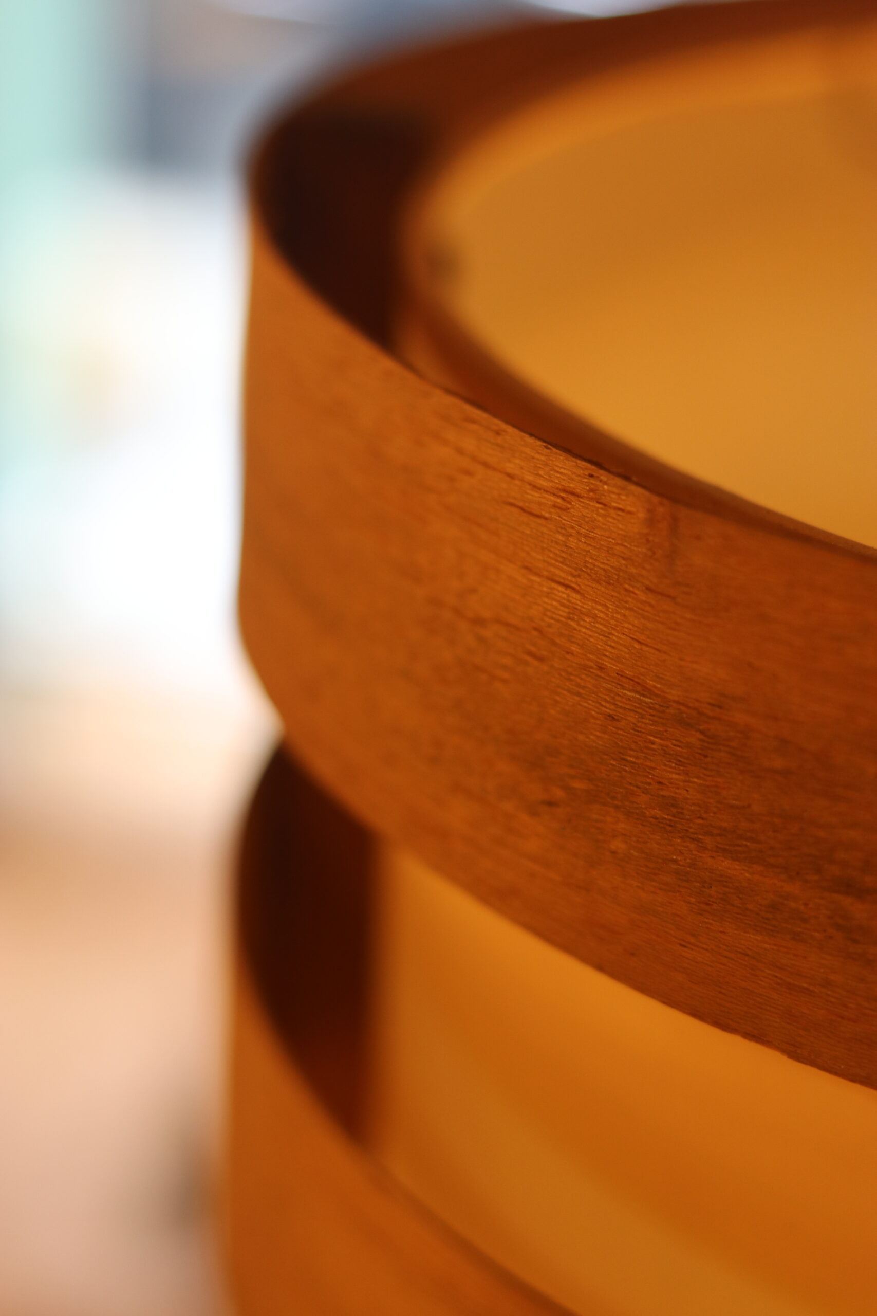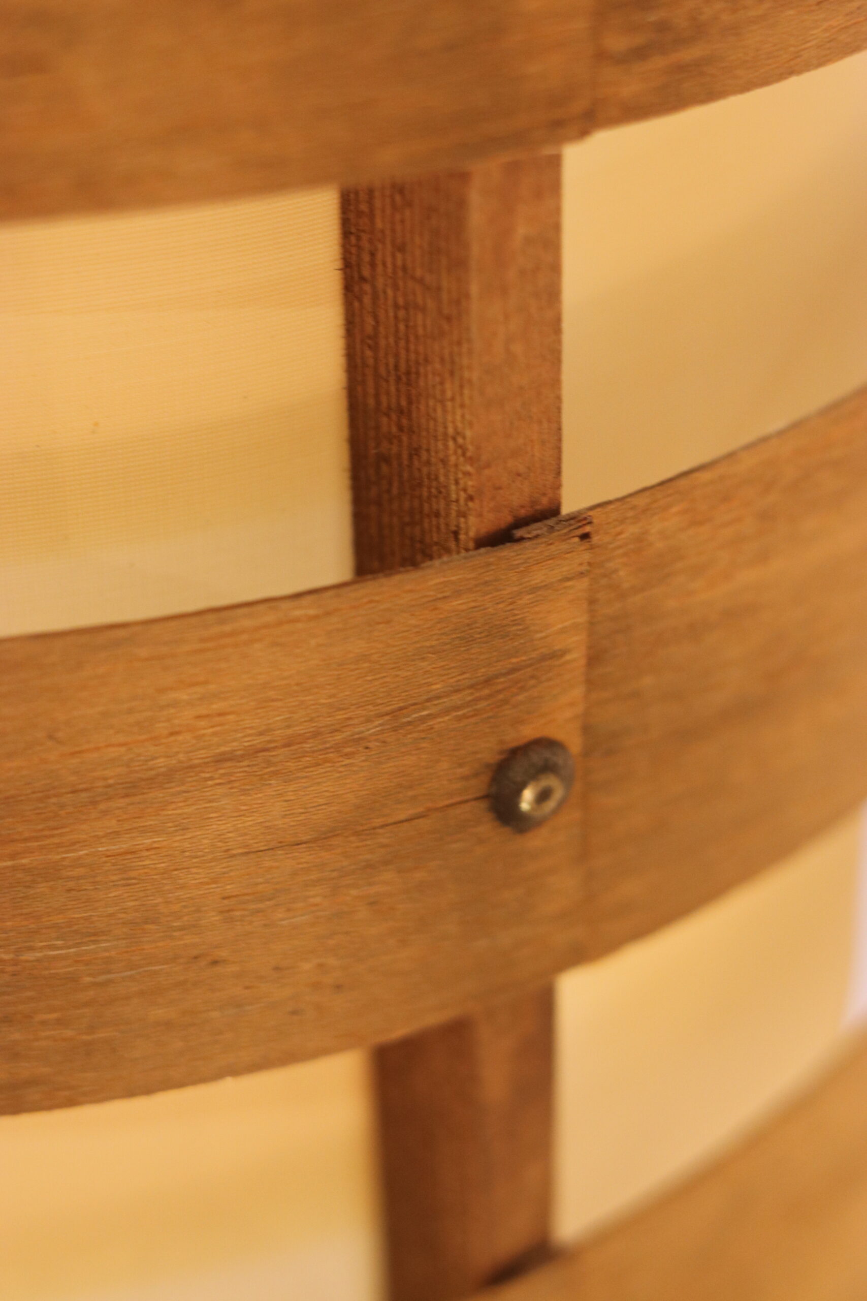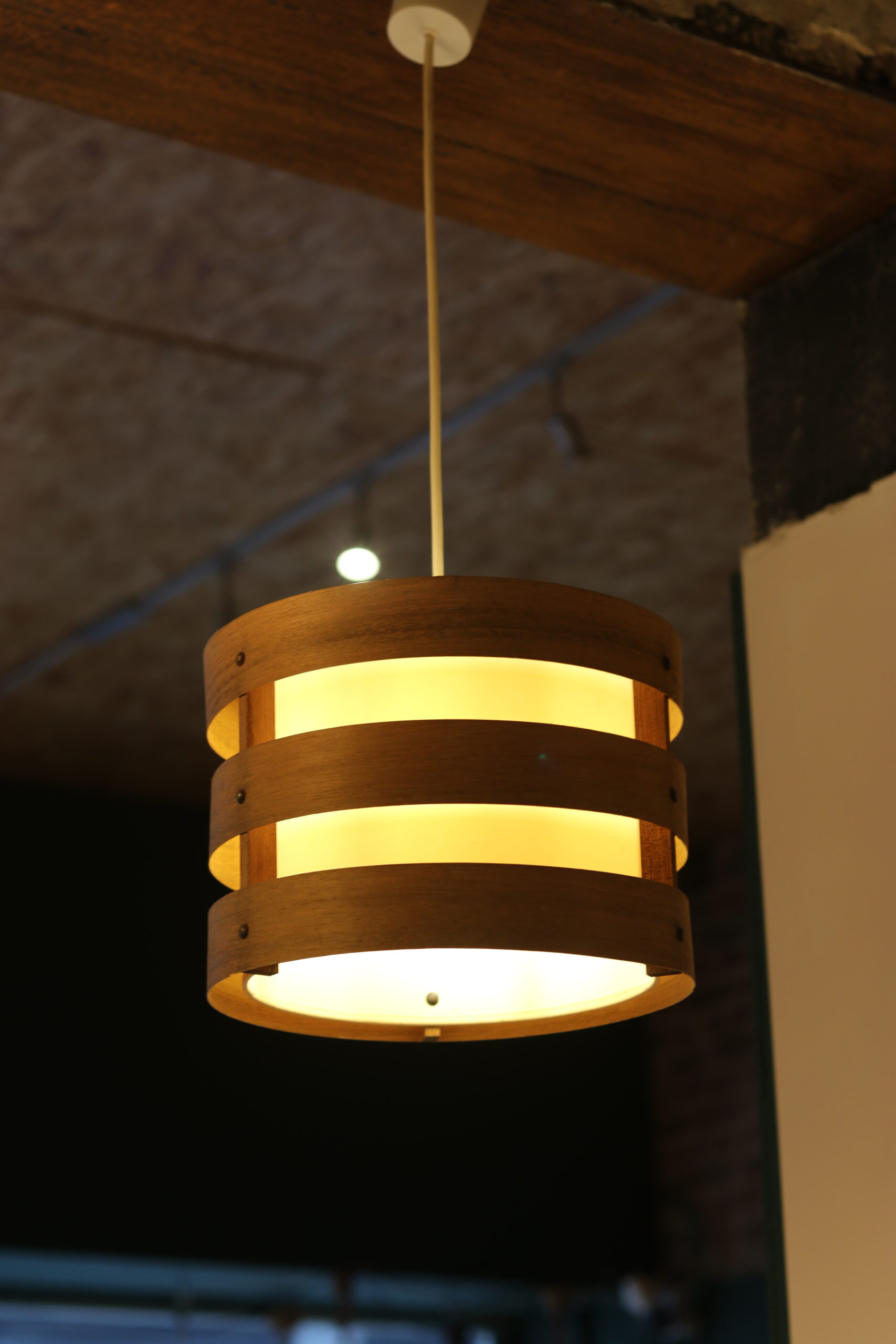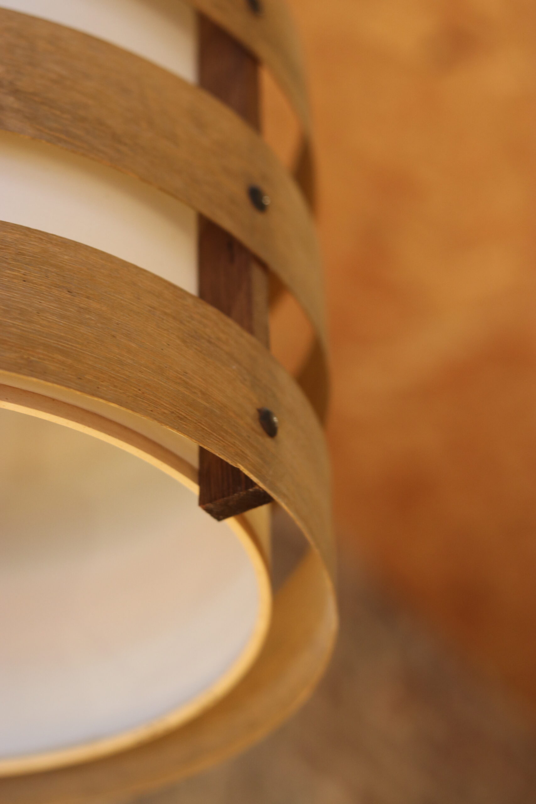 Suspension vintage Linus Bopp (Allemagne, 1960/70), bois cintré et abat-jour textile blanc.
