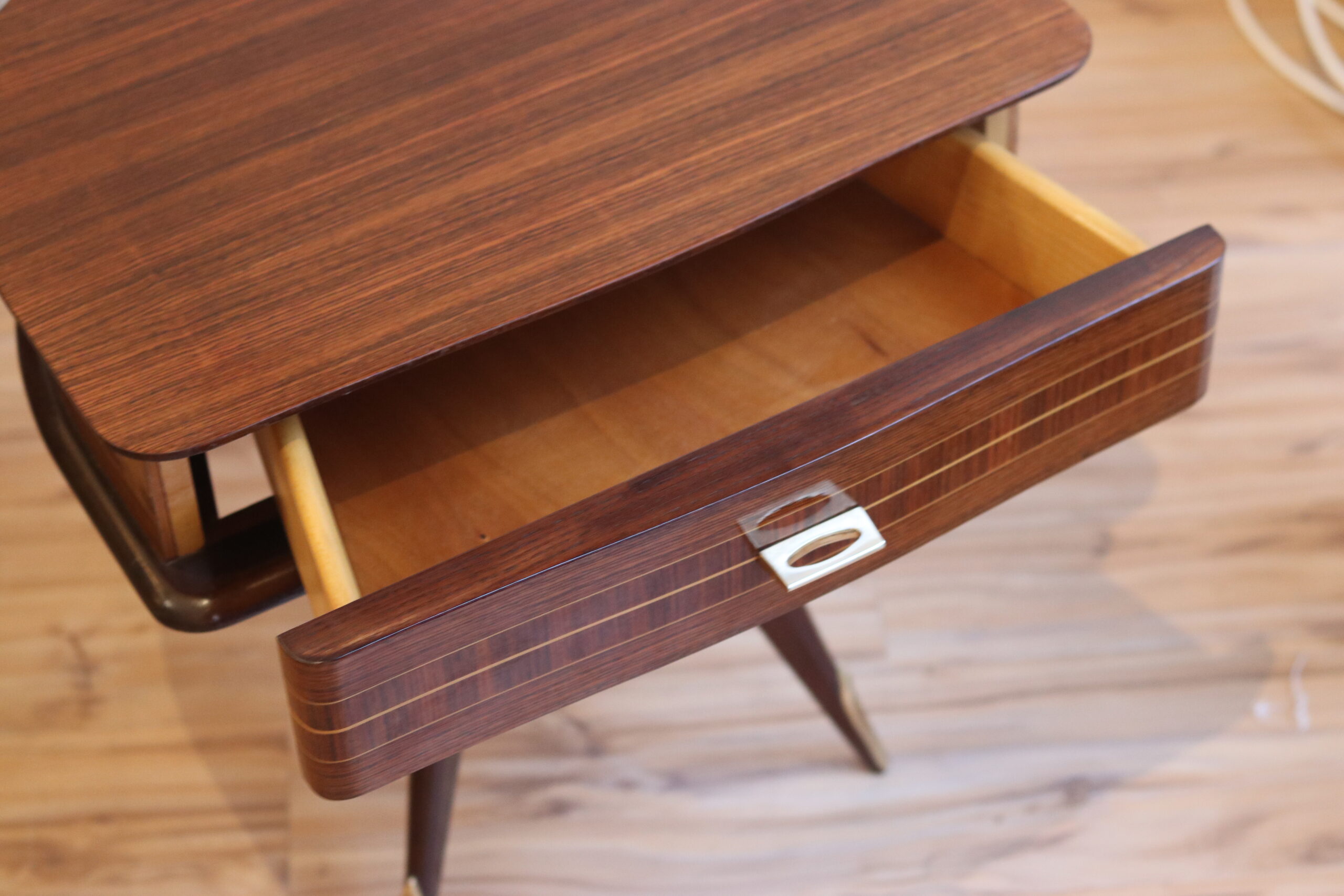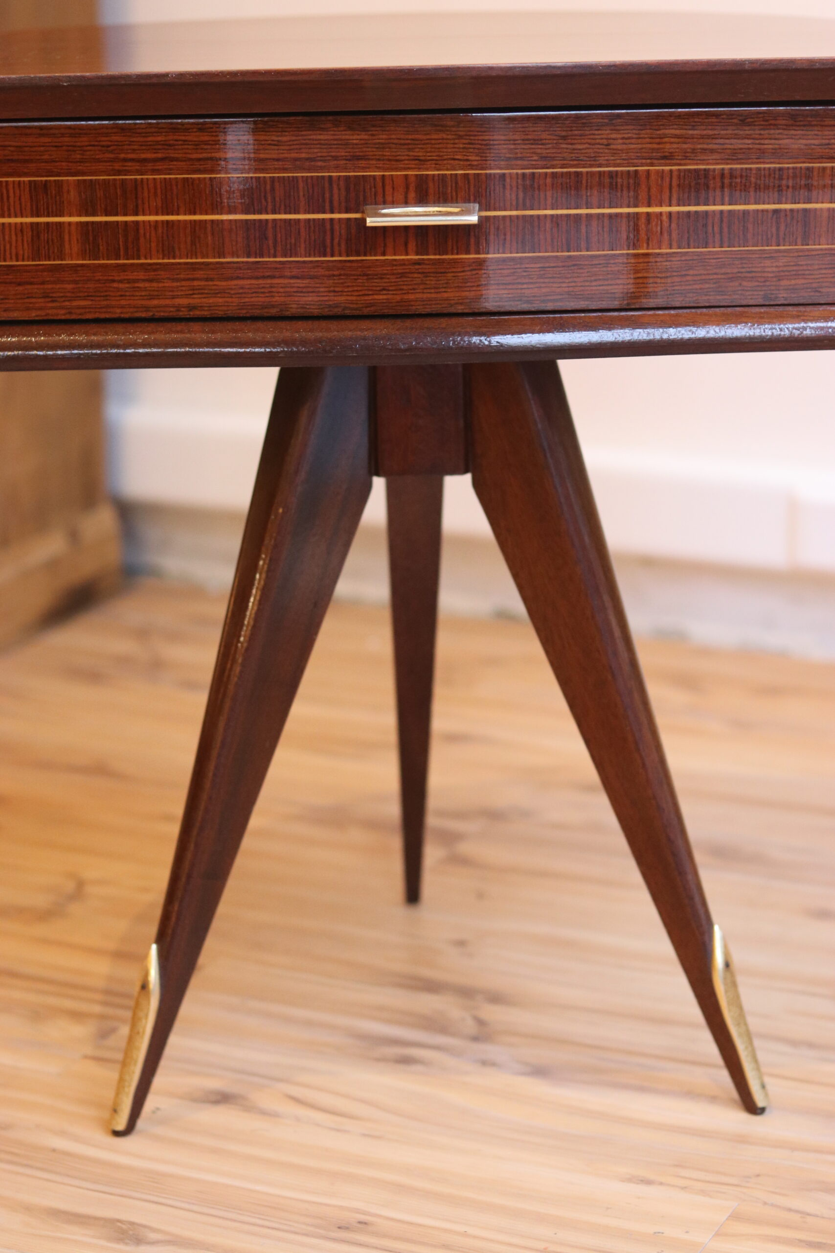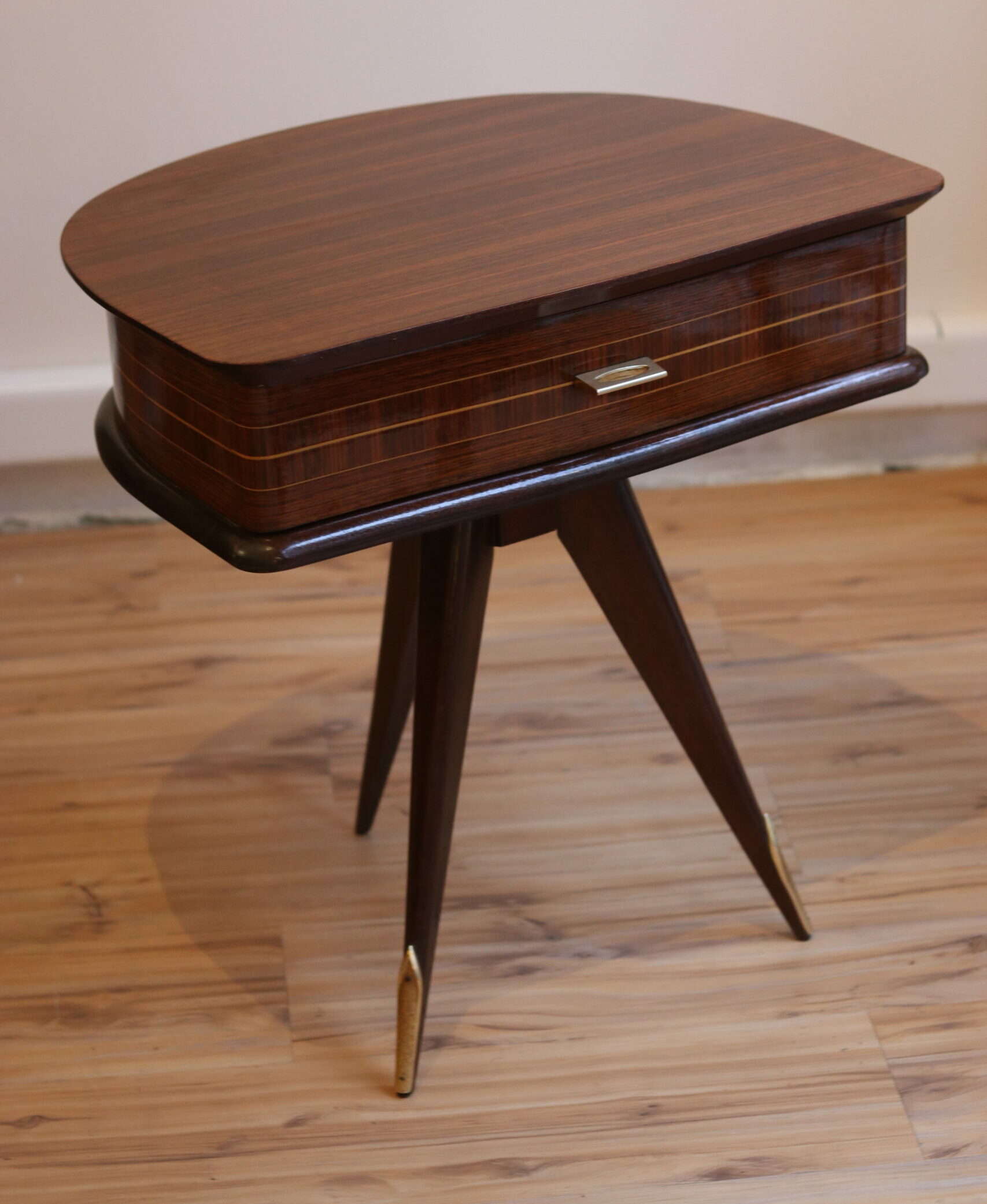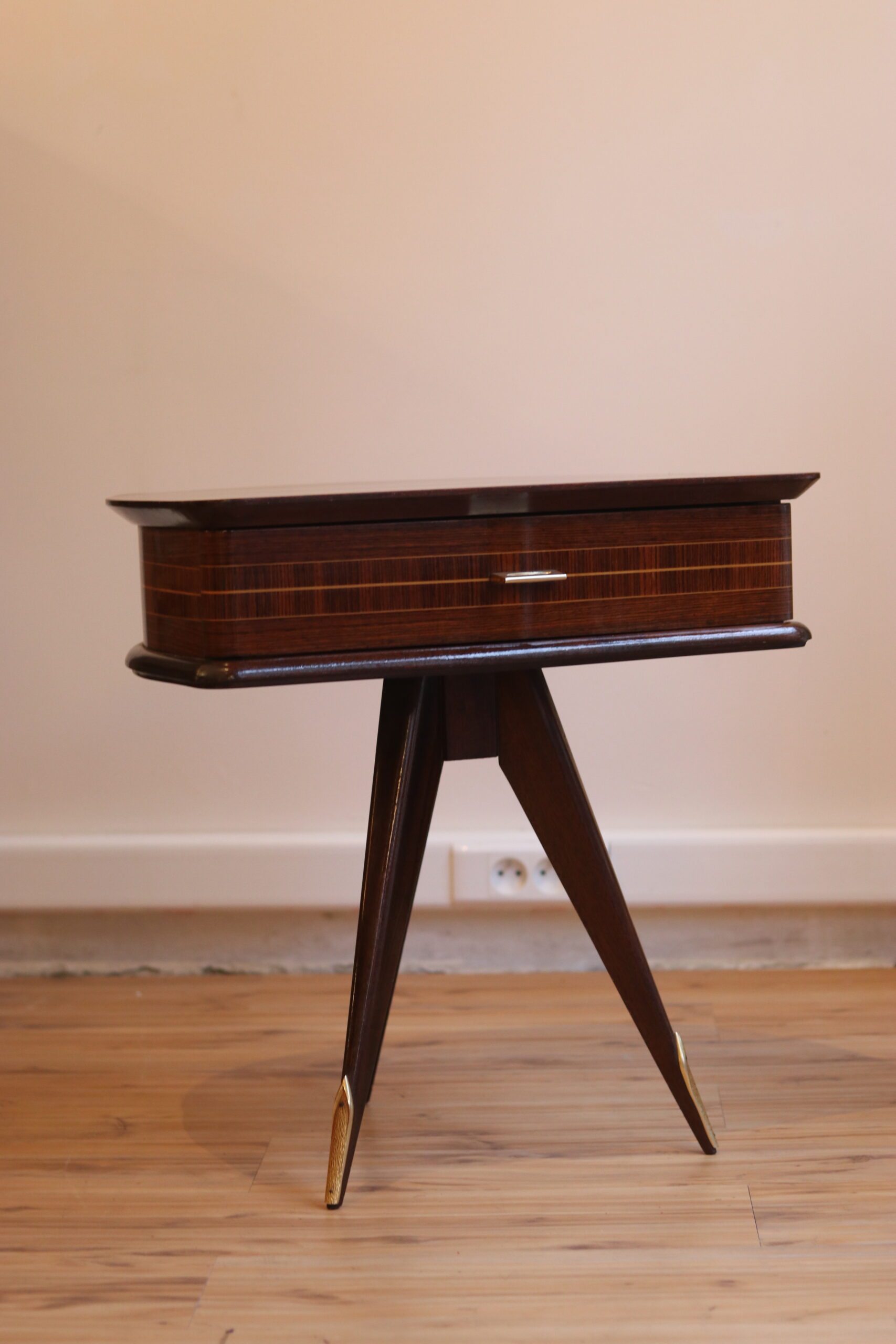 Table d’appoint 1950 en acajou et laiton