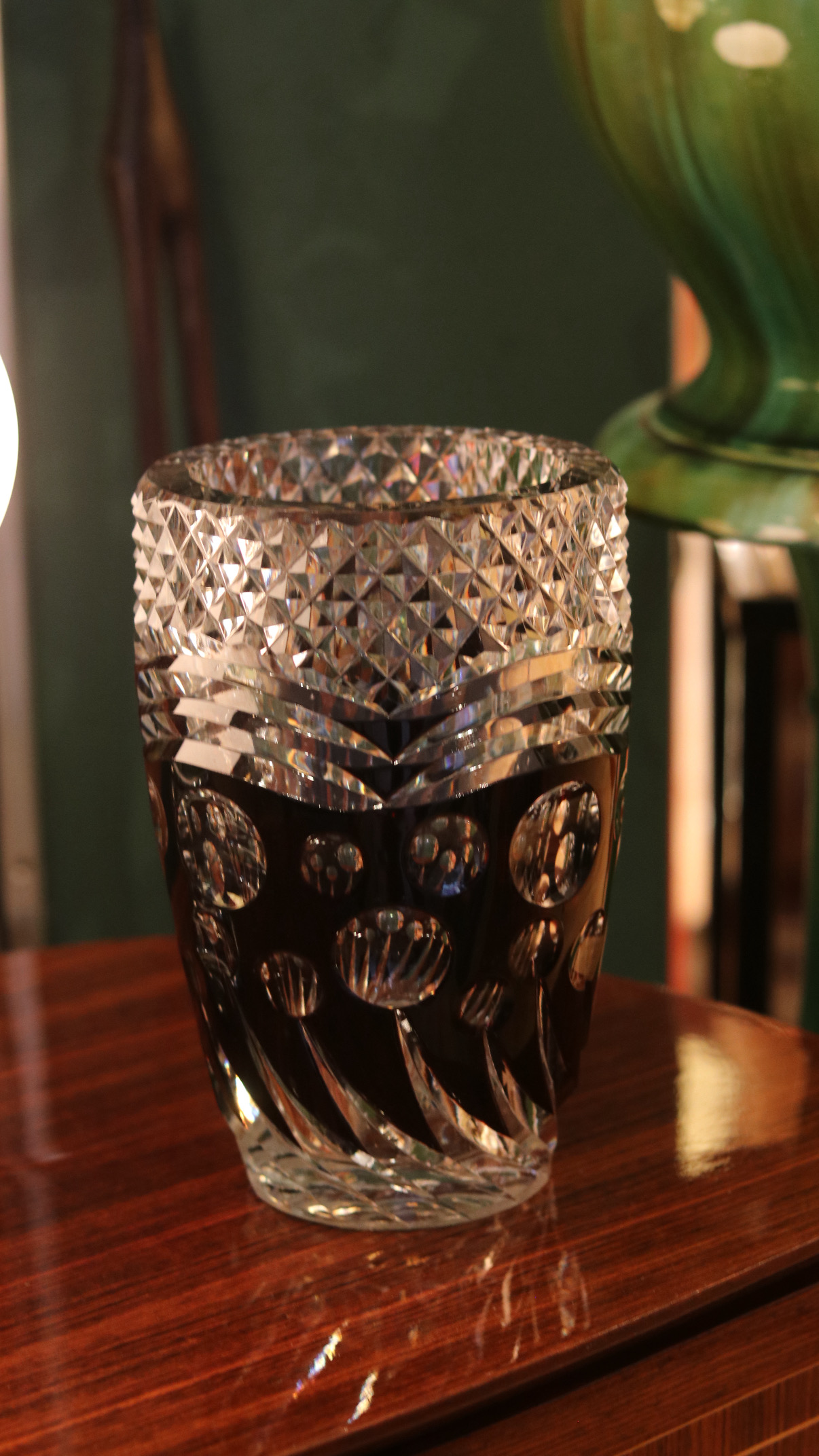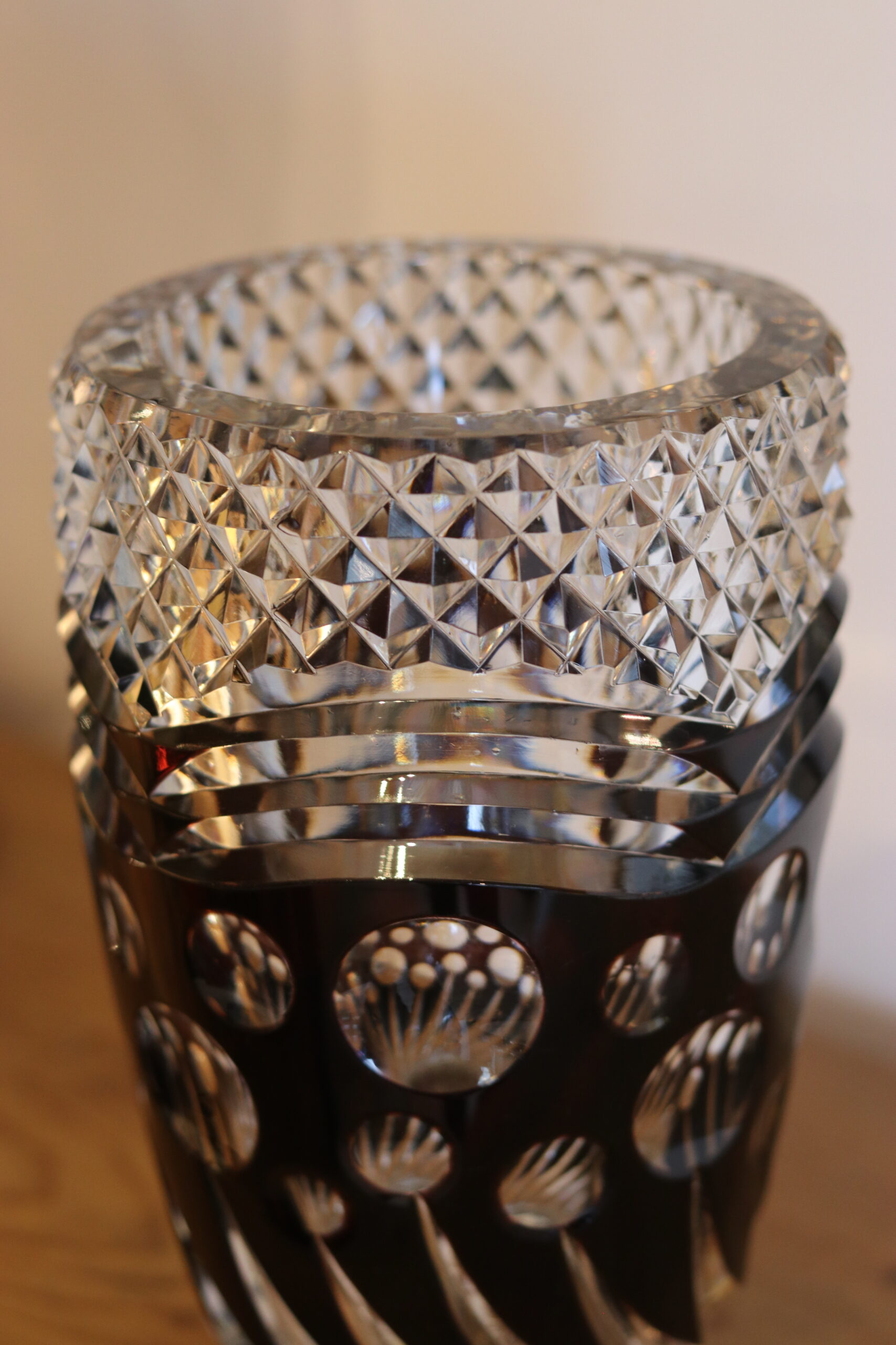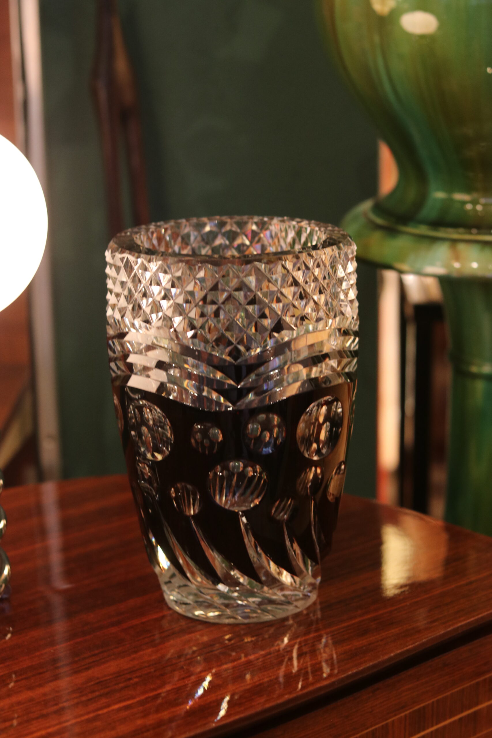 Vase Art Déco en cristal bicolore noir et clair, Val-Saint-Lambert, vers 1925