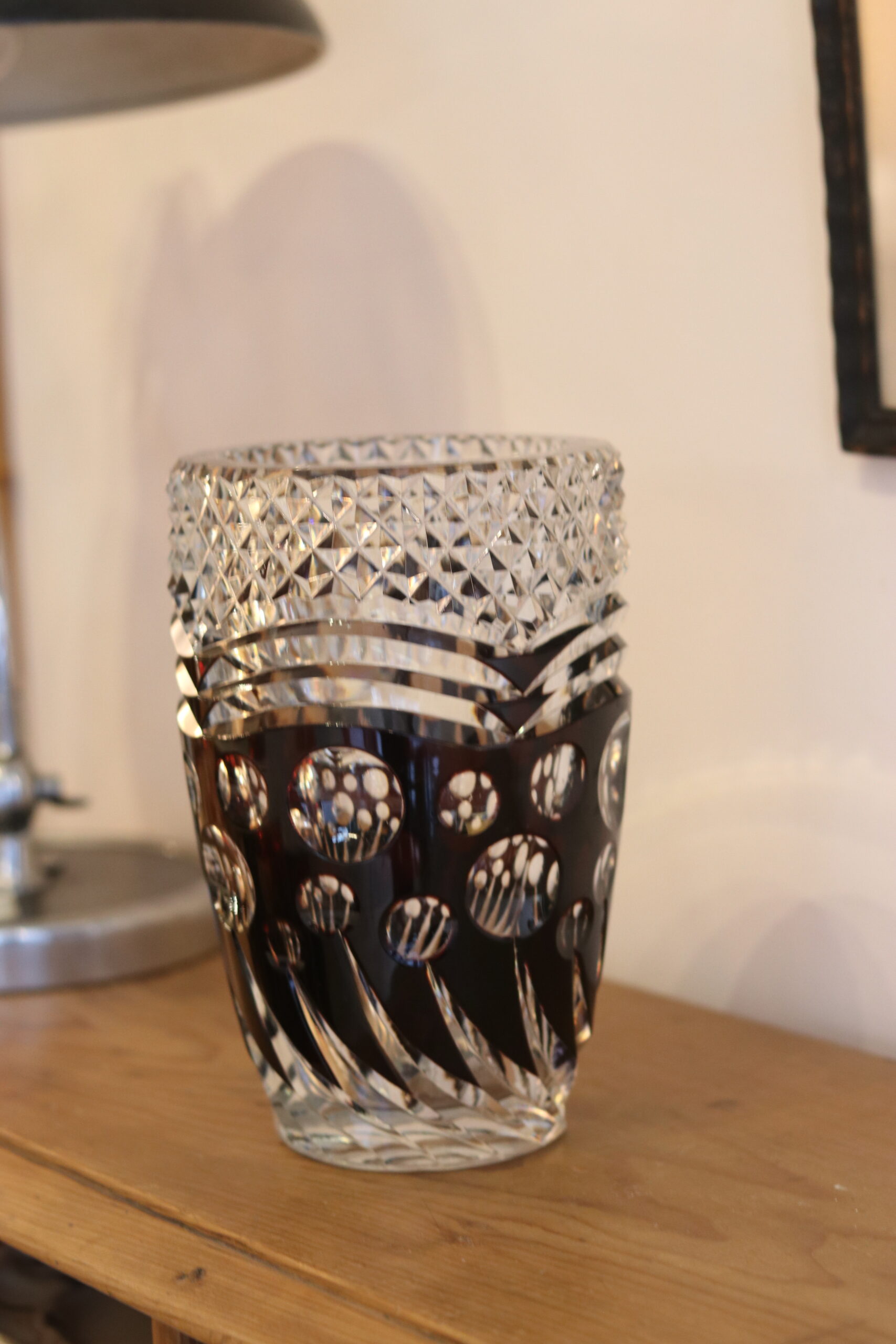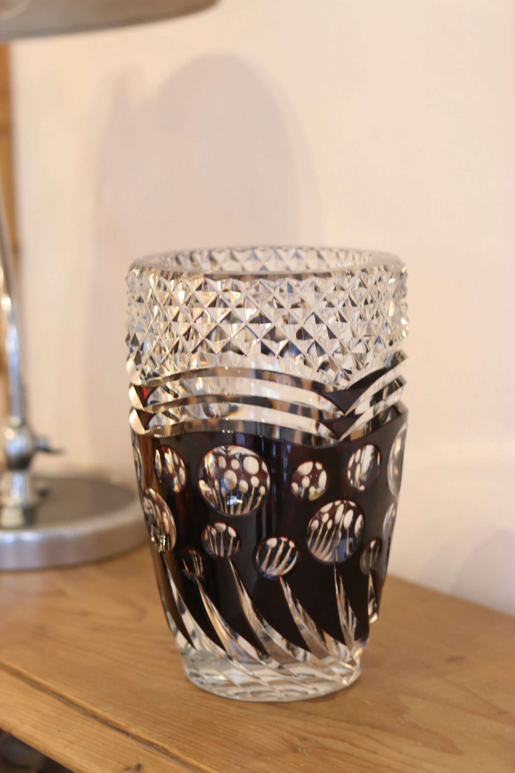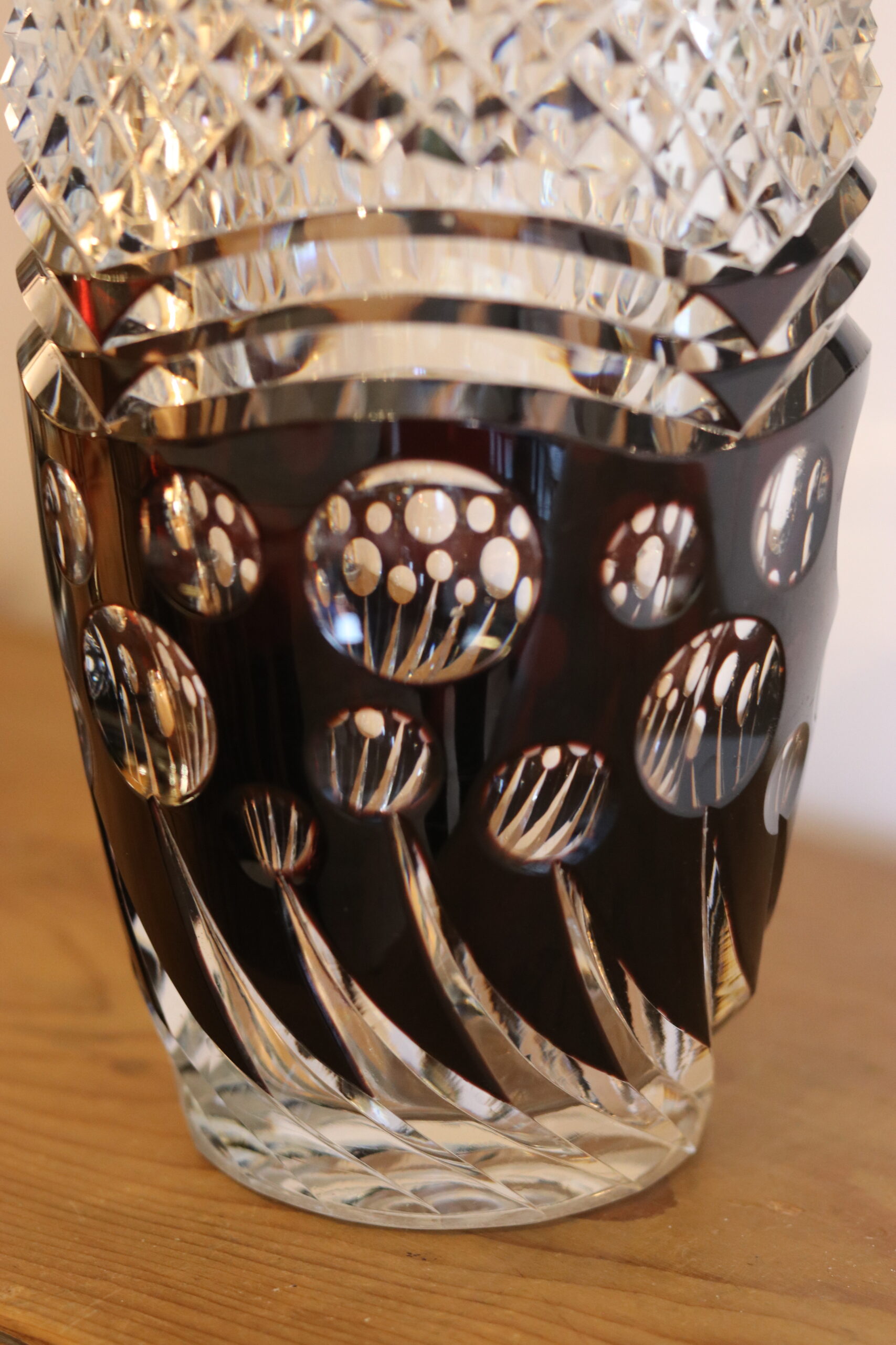 Élégant vase en cristal bicolore de la prestigieuse manufacture du Val-Saint-Lambert, datant de la période Art Déco vers 1925.